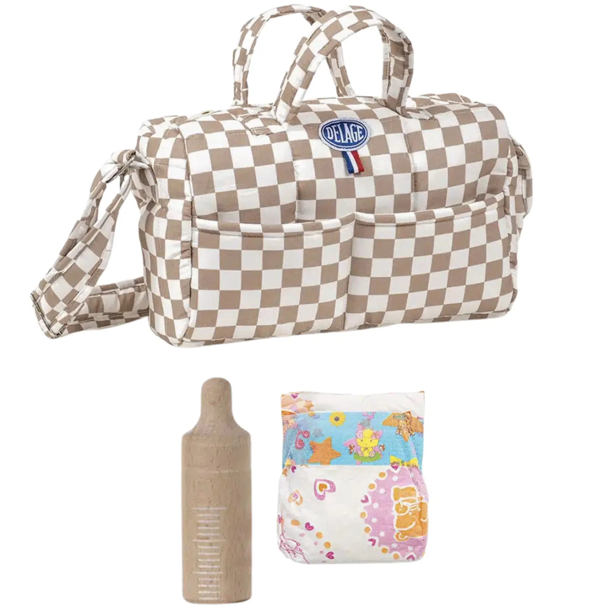 Accessoires poupées / Sac à langer Damier beige et blanc et ses accessoires