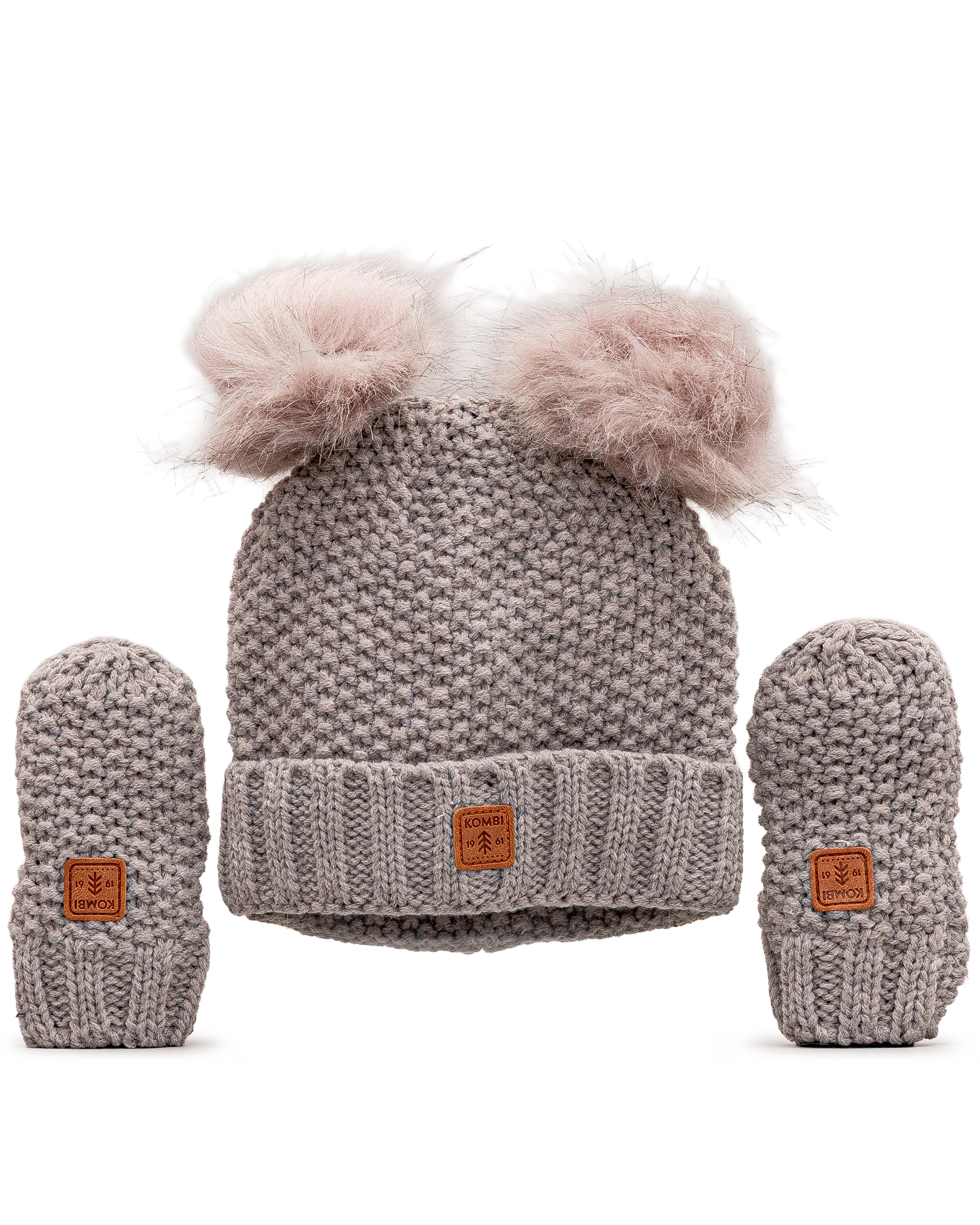 Cet ensemble gris pâle est parfait pour garder les bébés au chaud tout l’hiver. La tuque à pompons ajoute une touche mignonne et tendance. Les mitaines assorties offrent douceur et confort aux petites mains. Avec Kombi, les tout-petits profitent d’une protection complète et douillette durant la saison froide.
