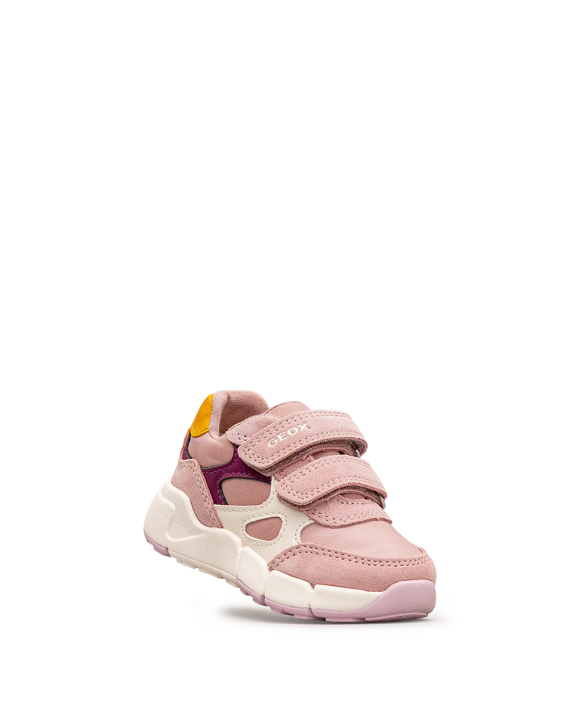 Ces chaussures Geox roses allient style urbain et performance respirante. Leur construction légère et souple favorise le confort tout au long de la journée. Grâce à leur système à velcros, elles s’enfilent en un clin d’œil. Un modèle parfait pour accompagner les tout-petits dans toutes leurs aventures.