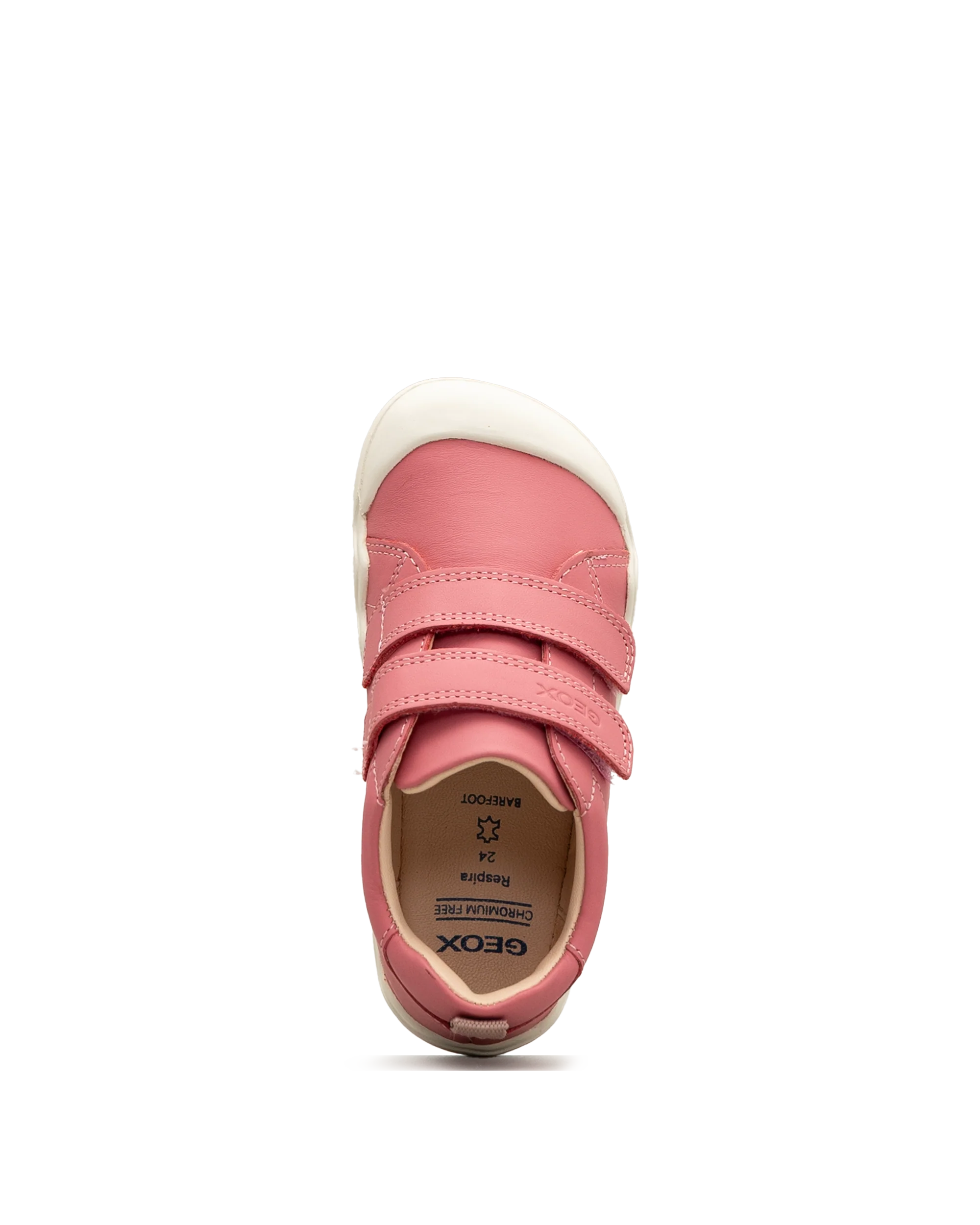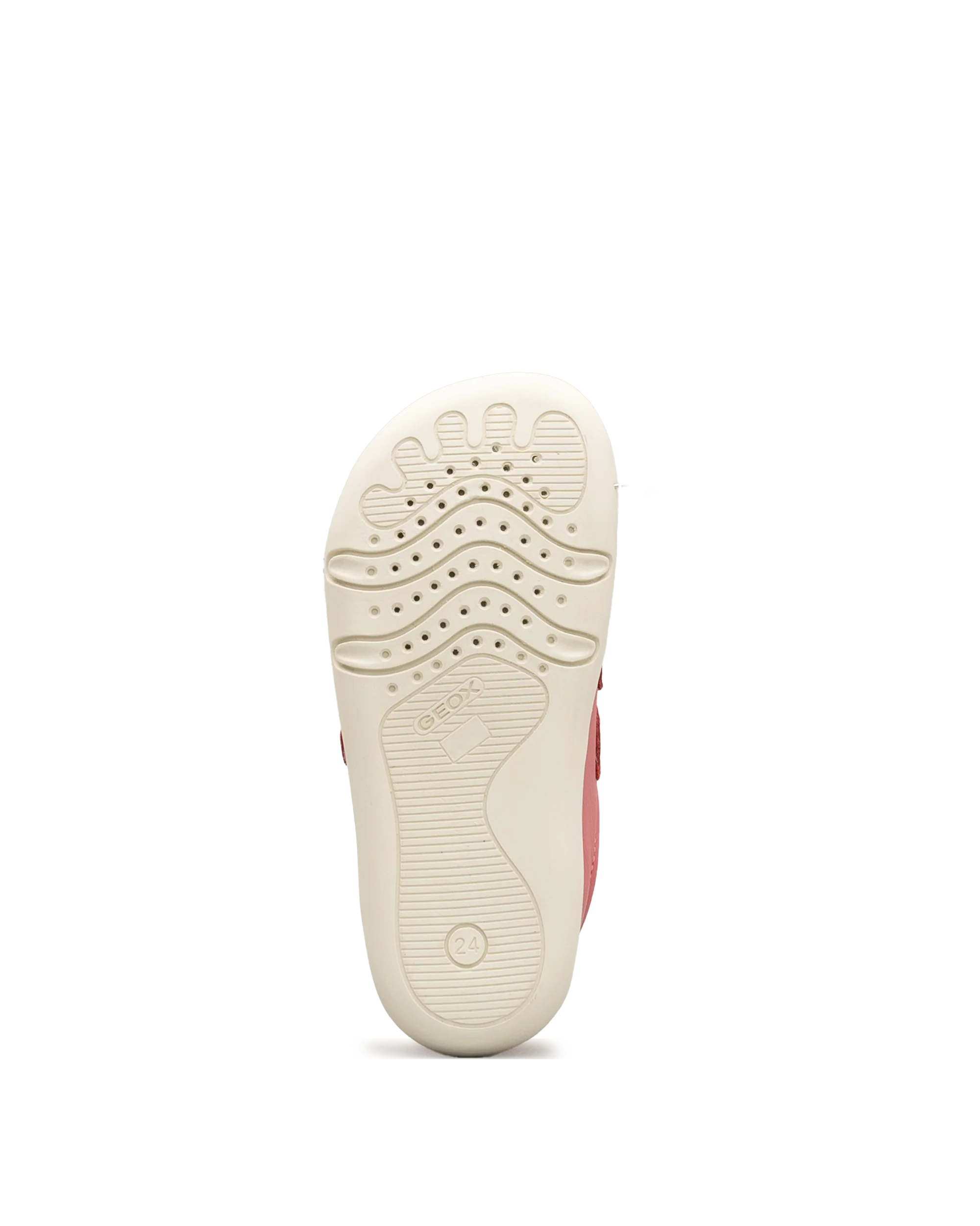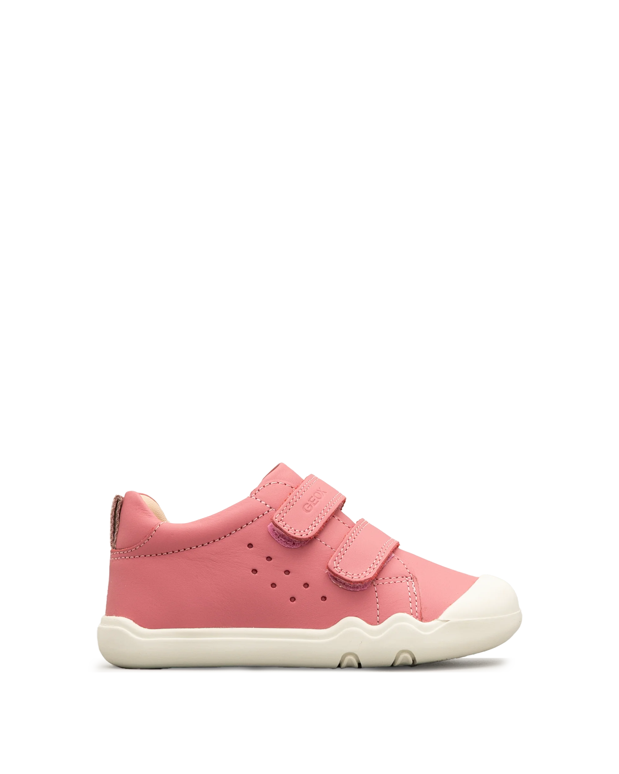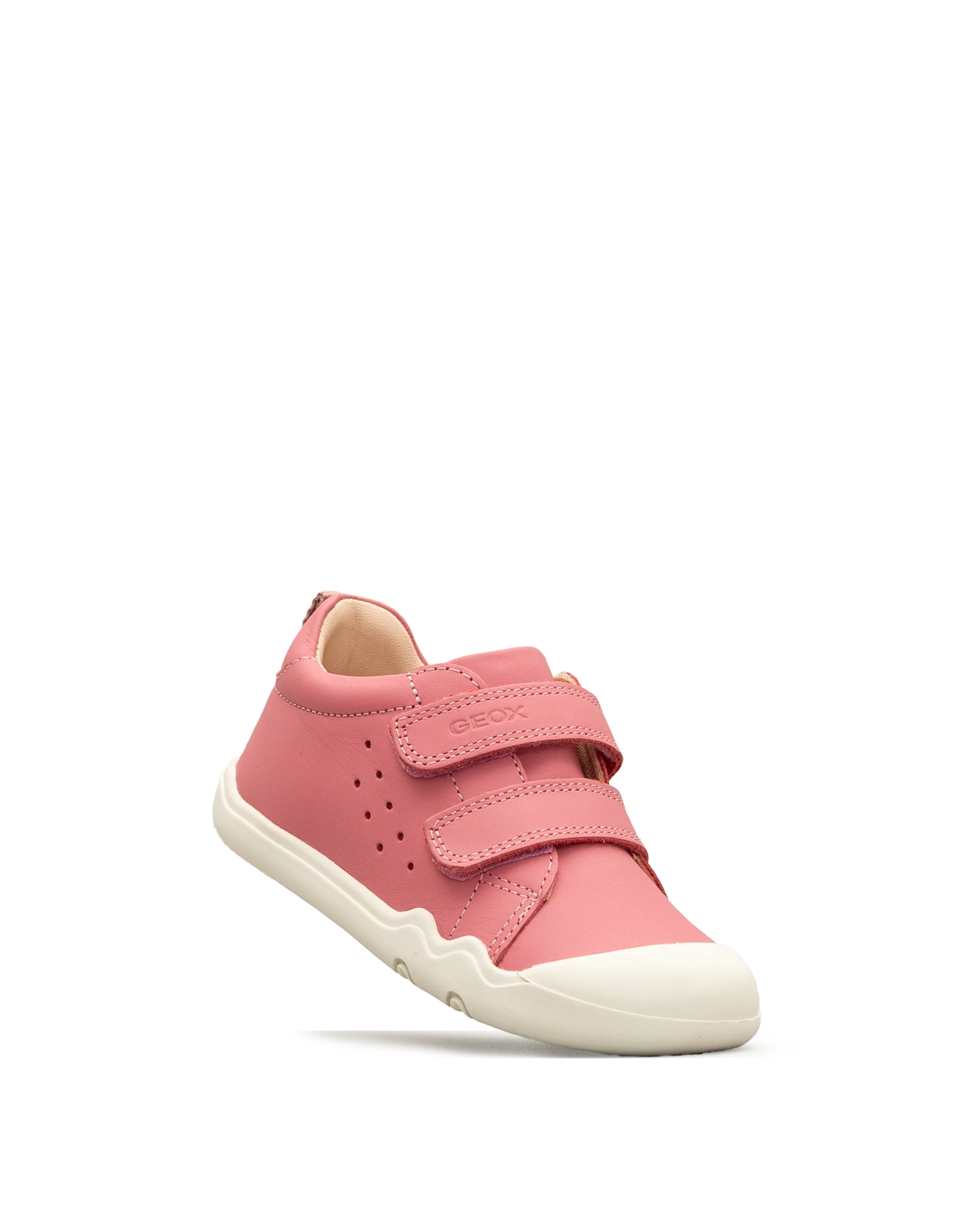 Ces chaussures pour bébé offrent un excellent maintien tout en favorisant la respiration du pied. Le bout renforcé protège les petits orteils durant les explorations. Dotées de deux velcros, elles sont faciles à enfiler et à ajuster. Geox propose ici une chaussure pratique et confortable pour les premiers pas.