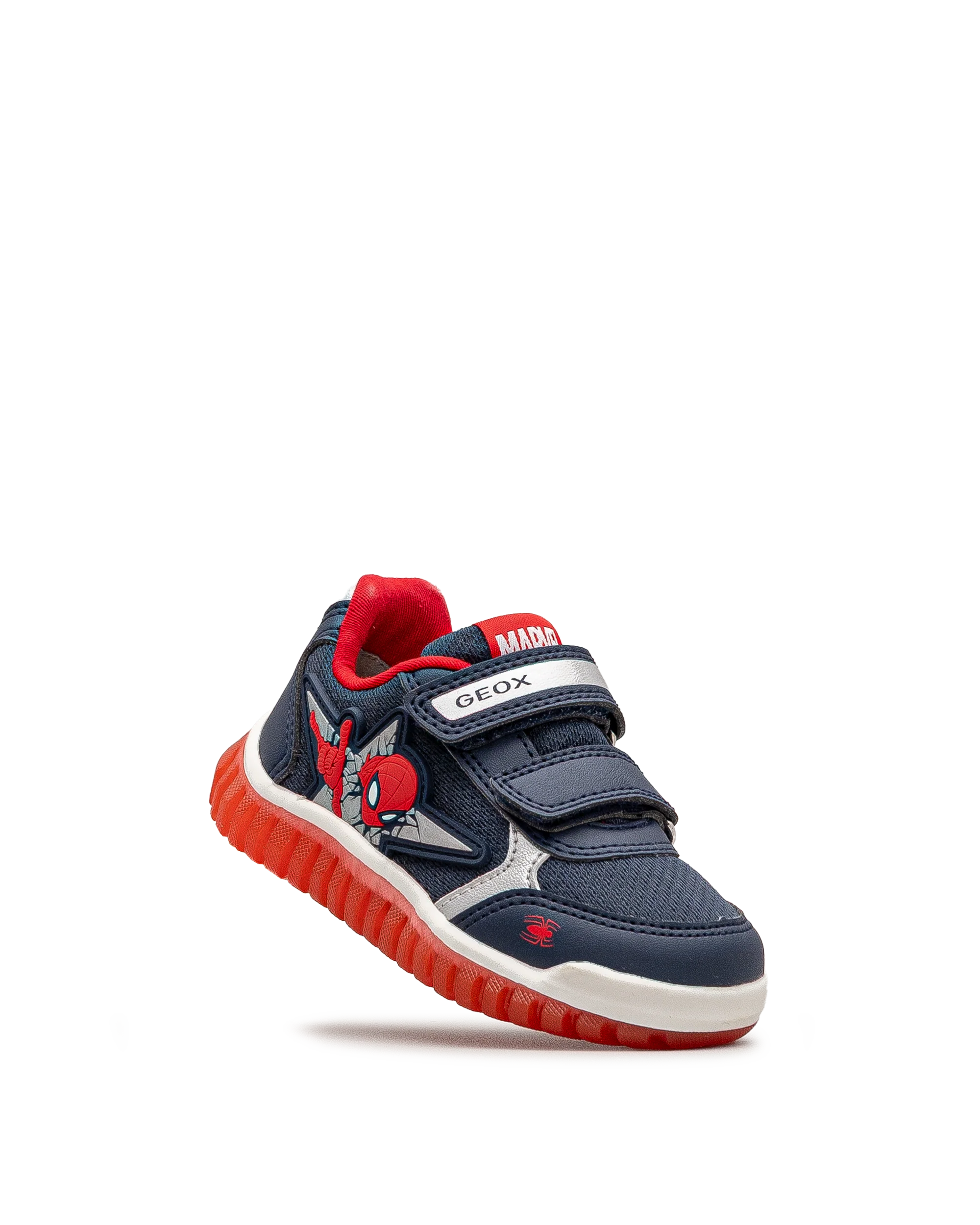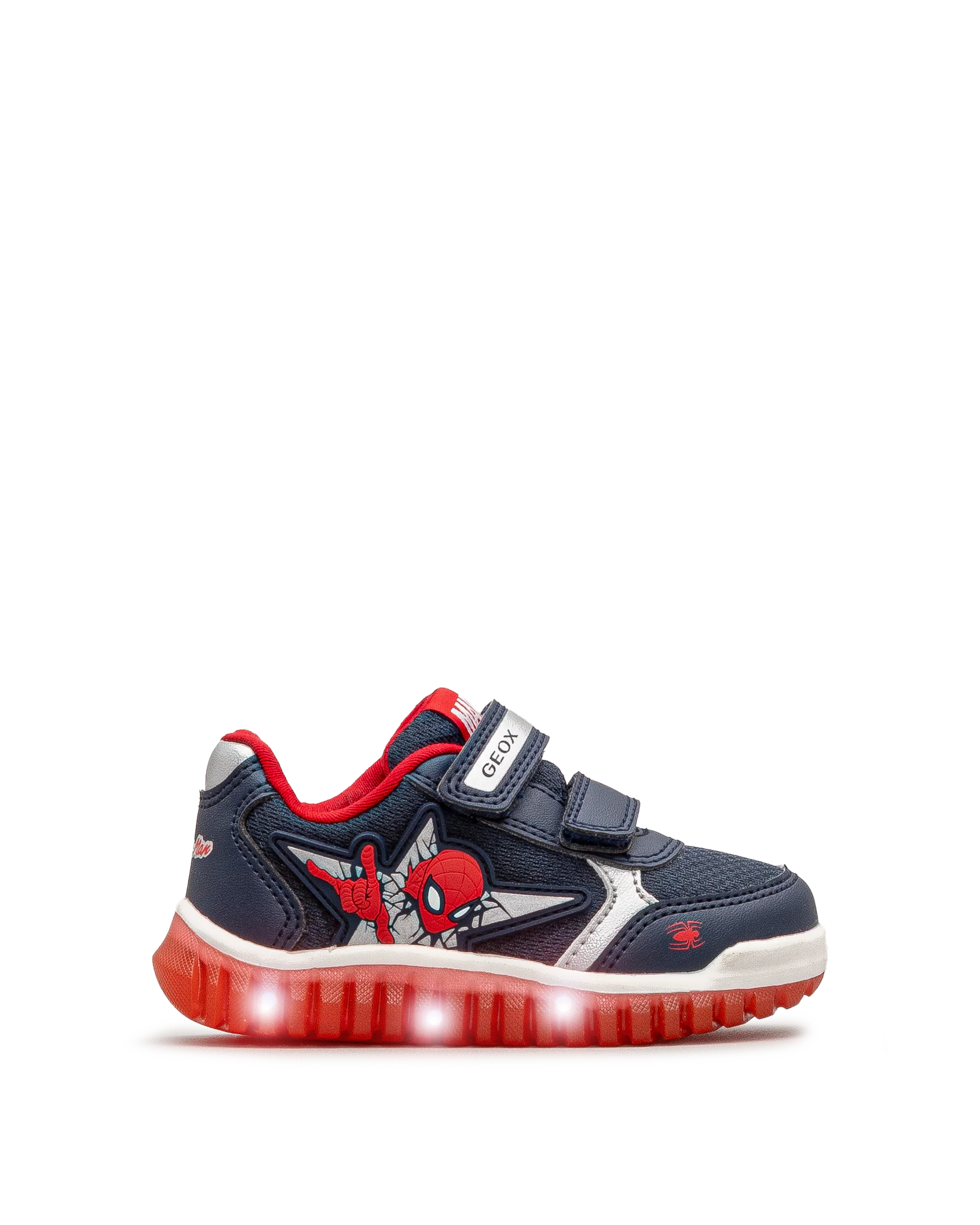 Ces souliers lumineux rouge et bleu affichent fièrement un motif Spider-Man pour plaire aux jeunes amateurs de super-héros. Leur semelle qui s’illumine ajoute une touche amusante à chaque pas. Faciles à enfiler grâce à leur double attache auto-agrippante, ils assurent un bon maintien. Geox allie style ludique et confort au quotidien.