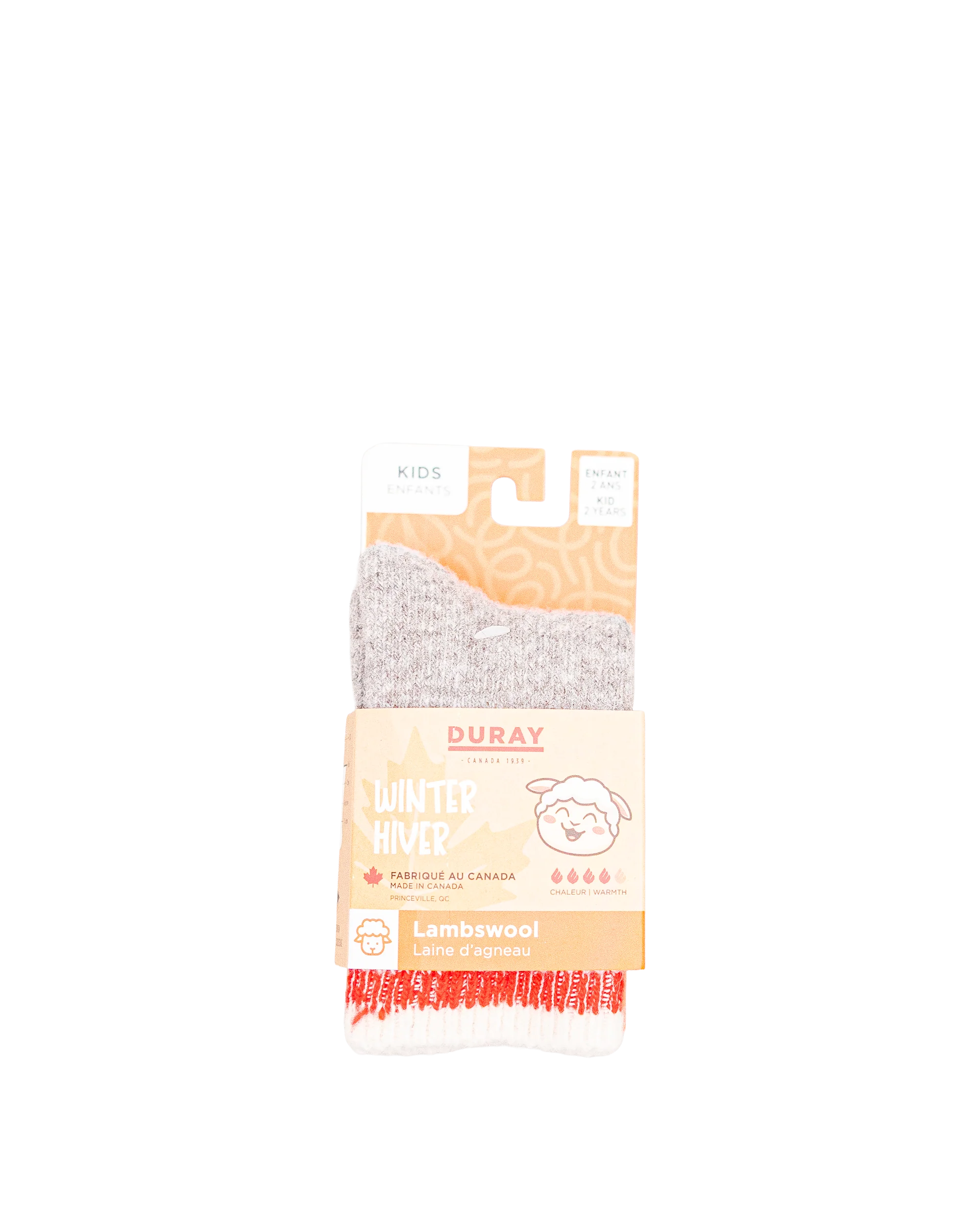 Ces bas de laine gris sont parfaits pour garder les pieds des enfants bien au chaud. Leur conception canadienne assure une qualité durable et un confort supérieur. Polyvalents, ils se portent facilement avec bottes ou pantoufles. Un essentiel hivernal doux et chaleureux signé Duray.