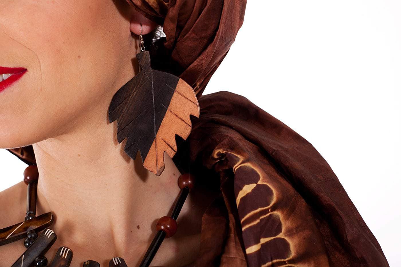 Boucles d’oreilles africaine en bois d’ébène : feuille