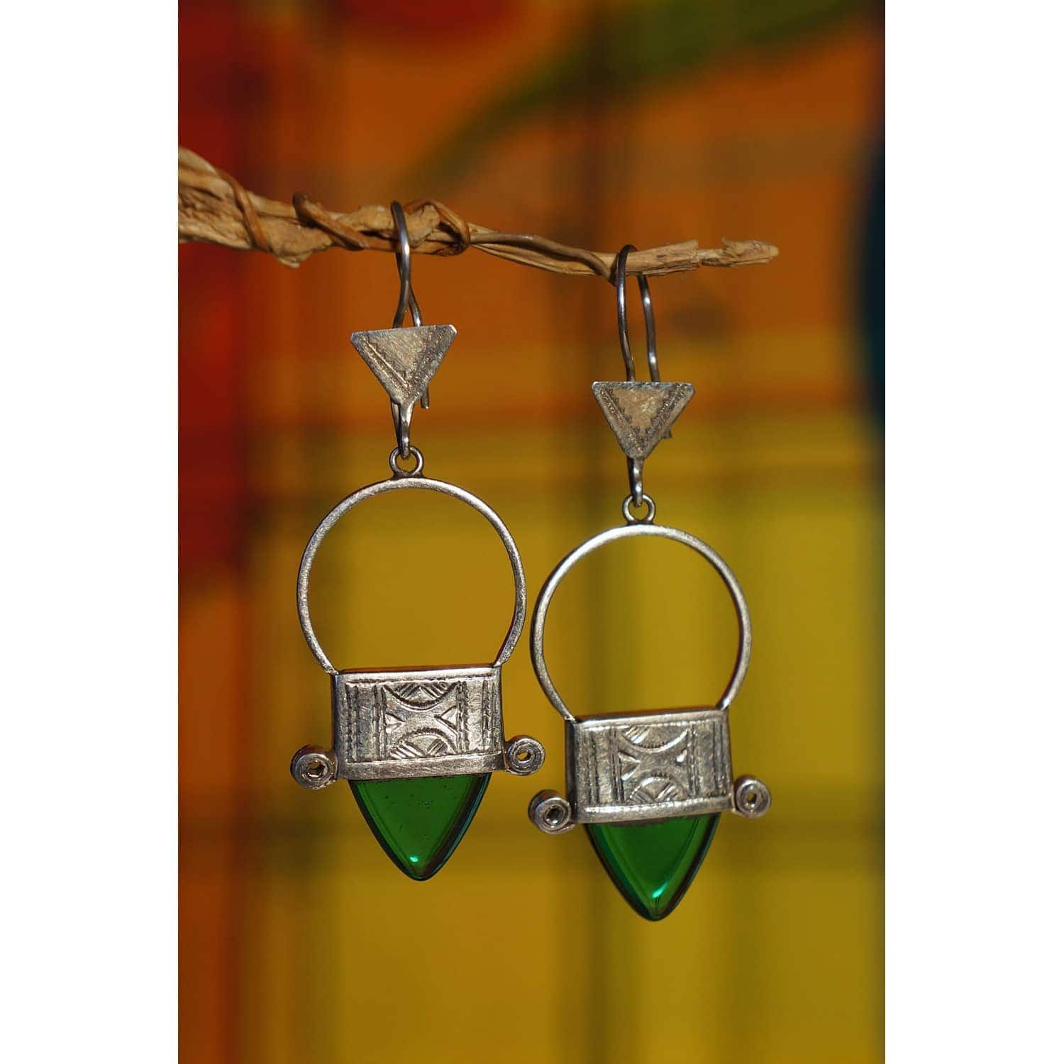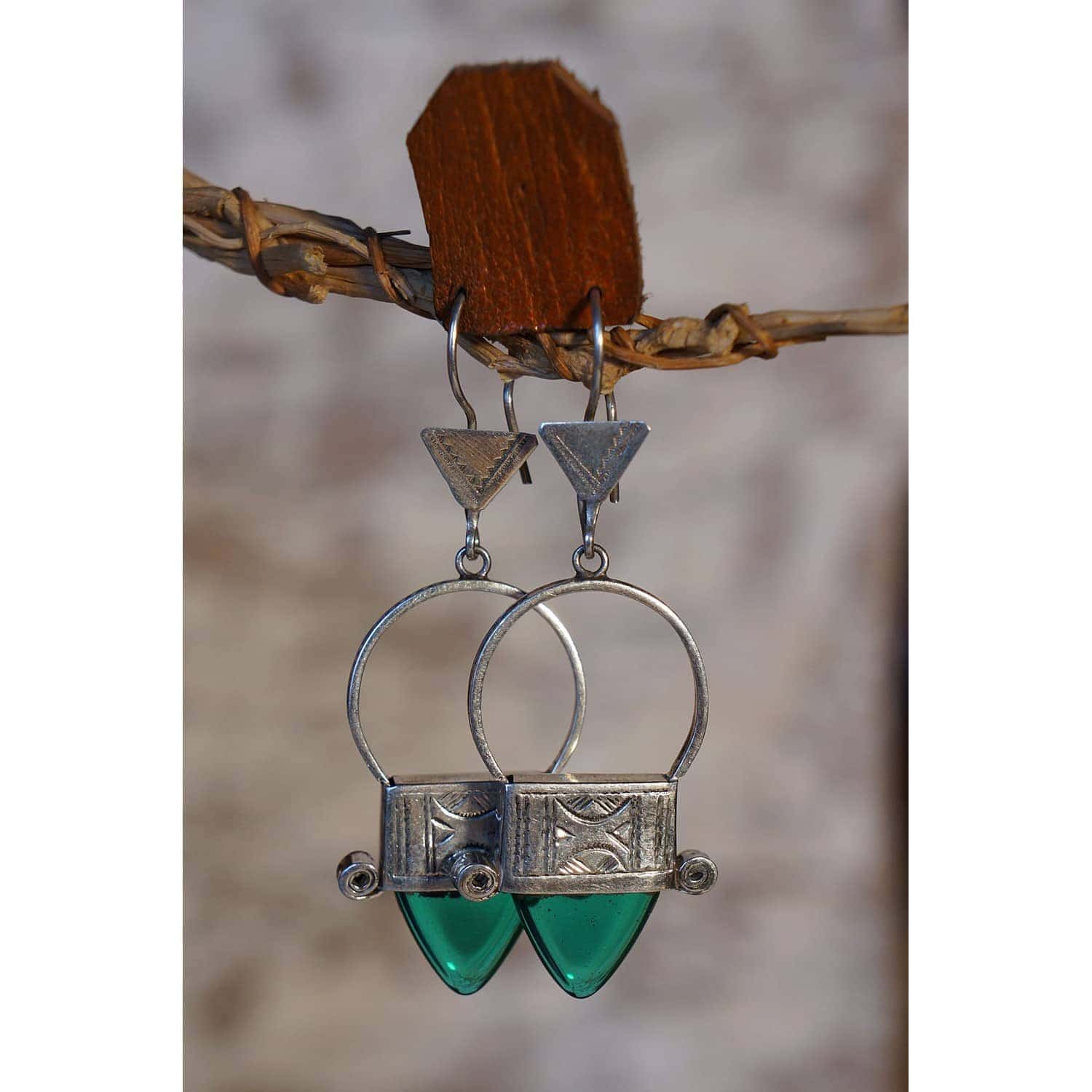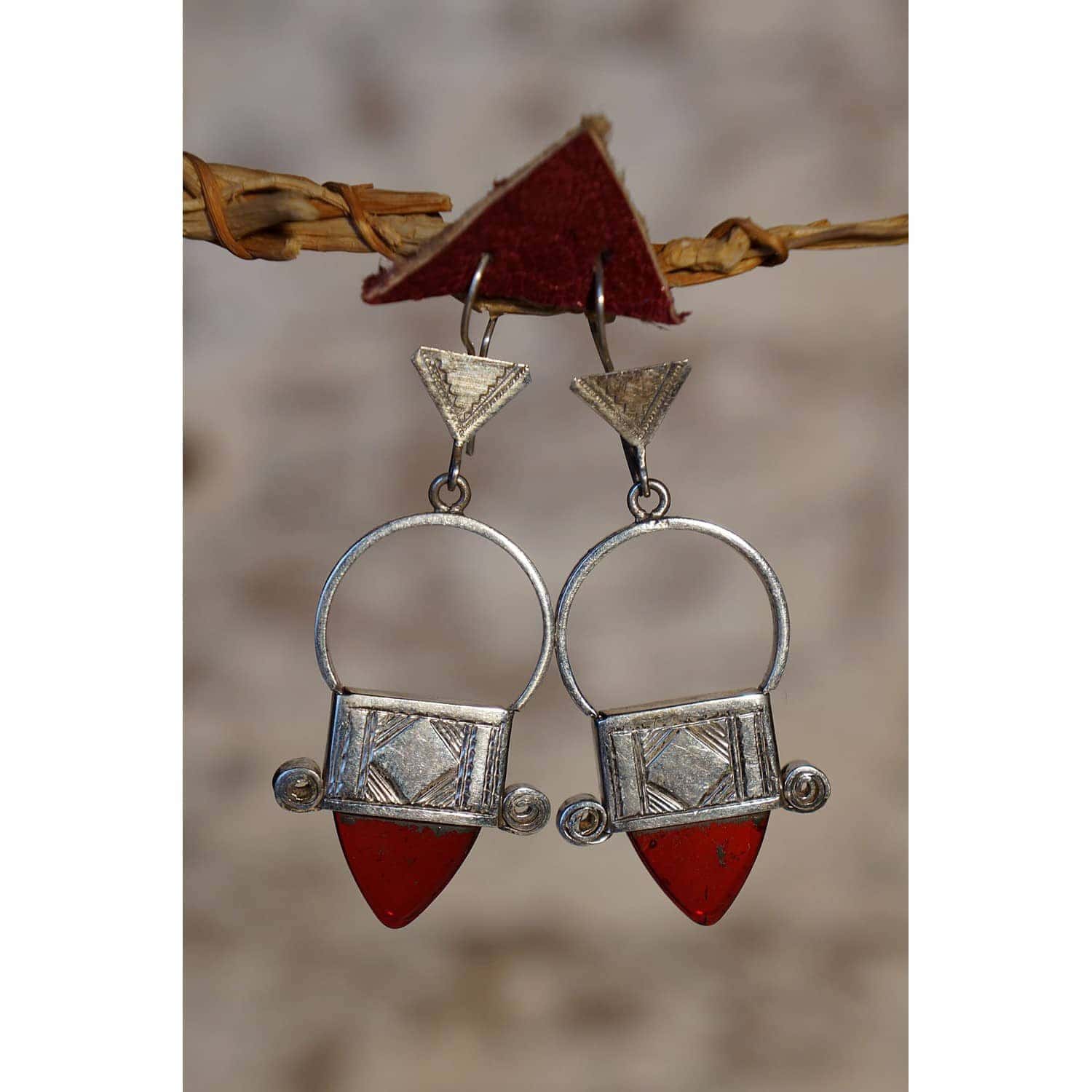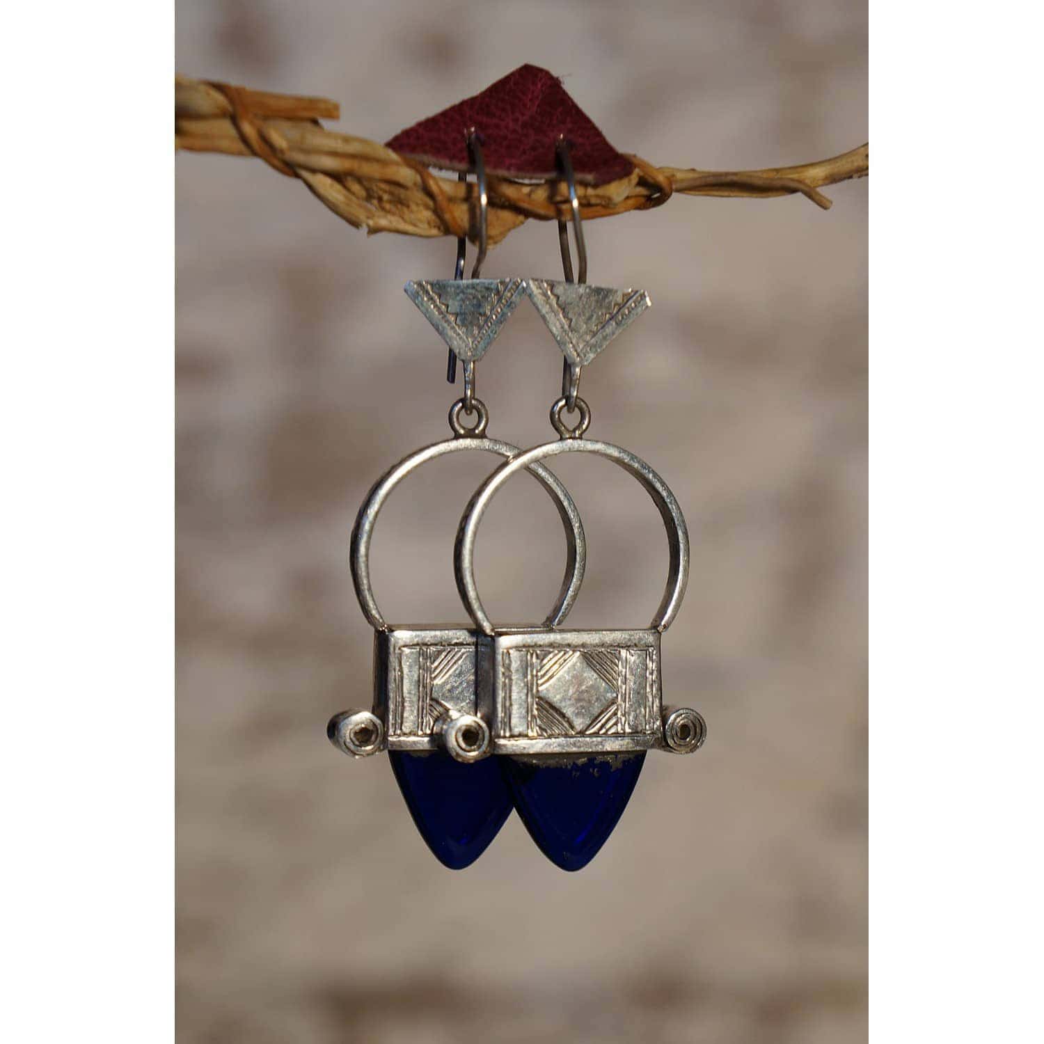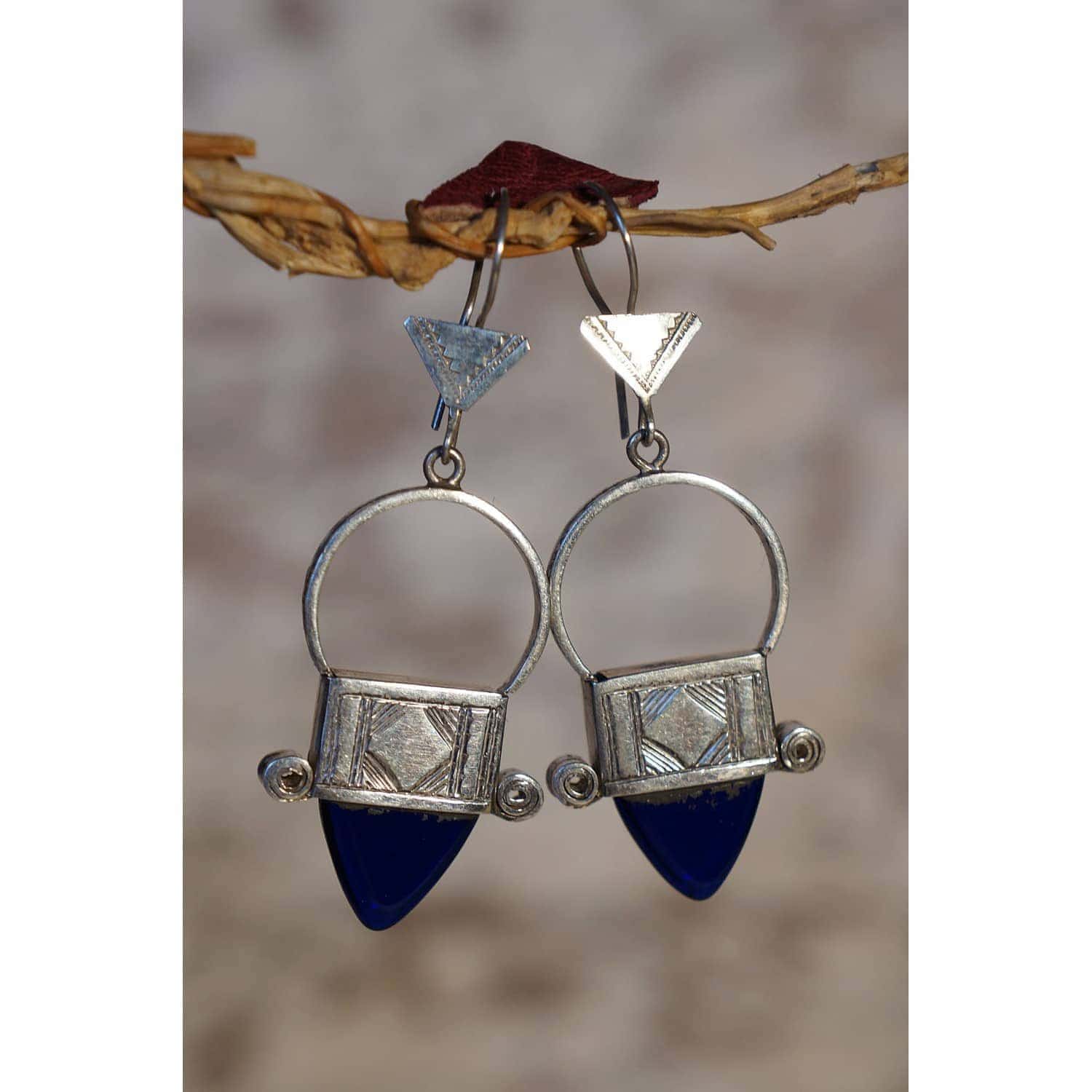 croix d’Ingall, qui est l’une des 22 croix touareg dont la plus renommée est la croix d’Agadez, est ici travaillée en boucles d’oreilles (4.3cm) en argent à teneur non garantie, avec de lumineux inserts triangulaires en verre transparent. Venez visiter notre notre boutique au 108 rue st maur Paris 11ème pour découvrir, toucher et vous imprégner d’un large choix de nos créations.
