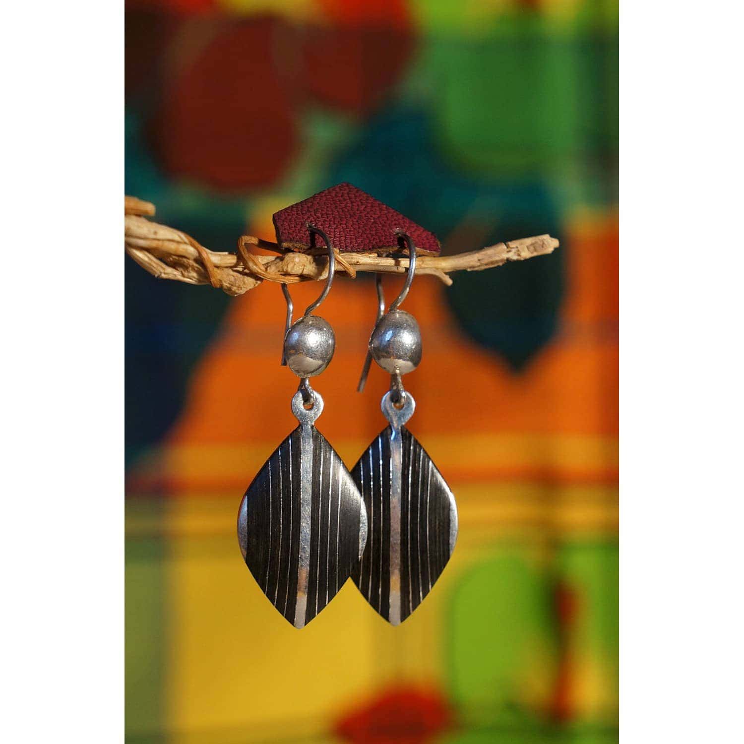 Boucles d’oreilles touareg en losanges d’ébène. Venez visiter notre notre boutique au 108 rue st maur Paris 11ème pour découvrir, toucher et vous imprégner d’un large choix de nos créations.