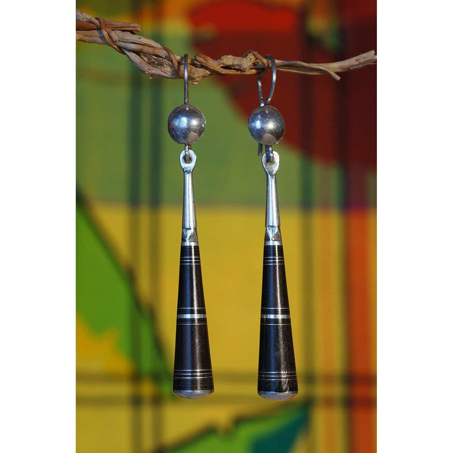 Boucles d’oreilles en argent et ébène avec gravures touareg.