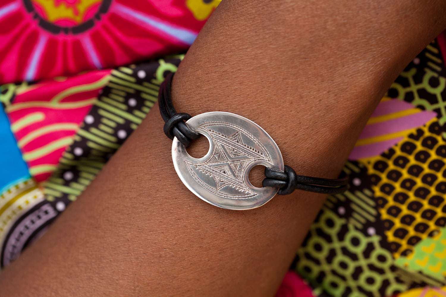 Bracelet ethniques Touareg médaillon en argent et cuir