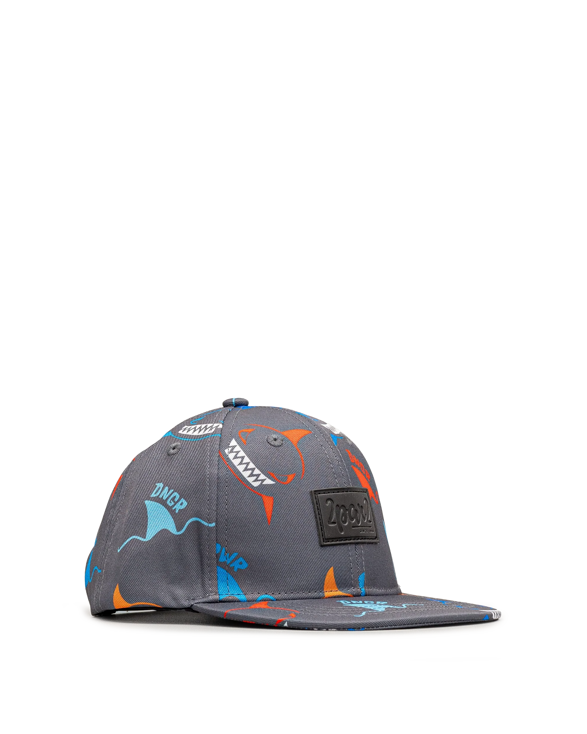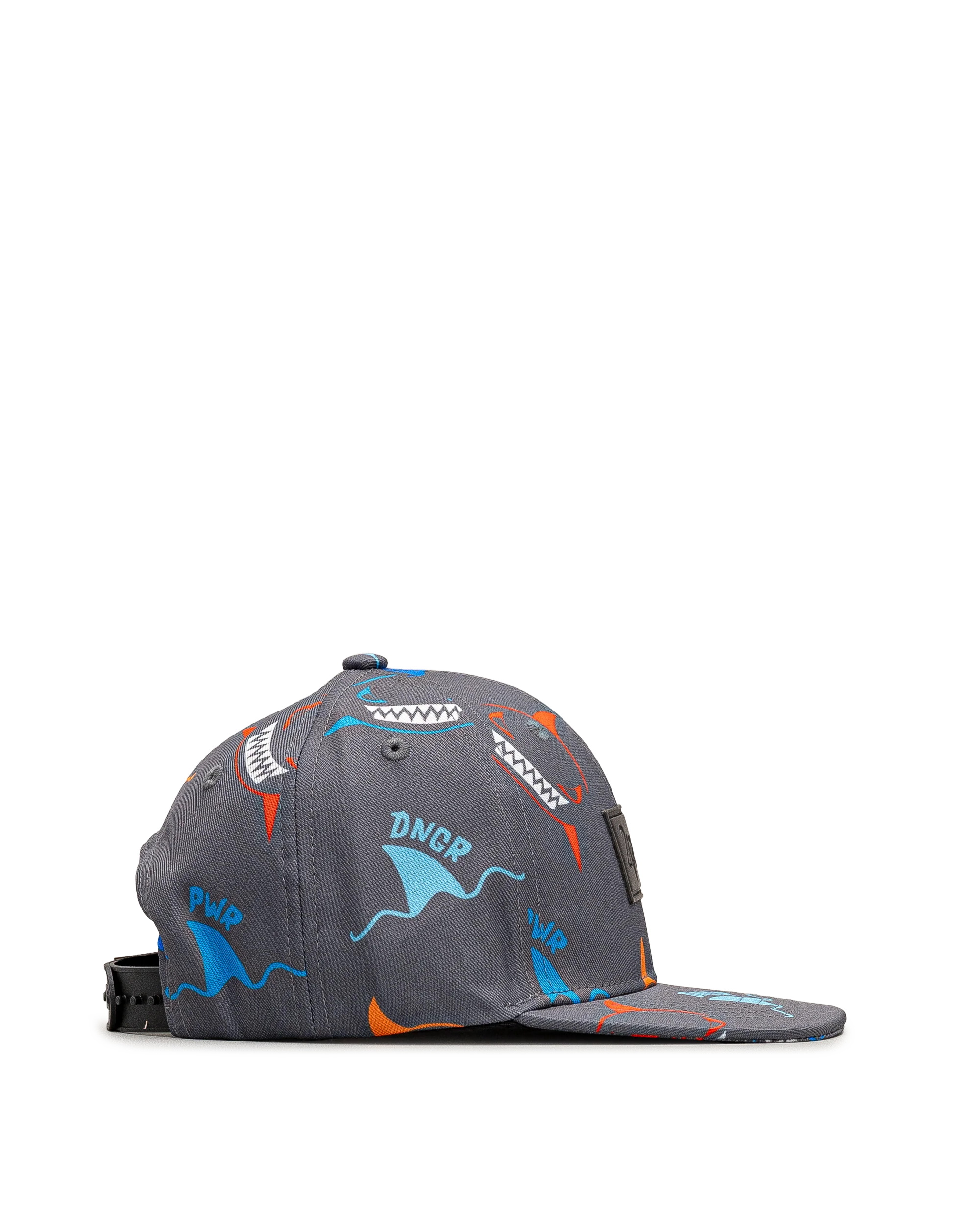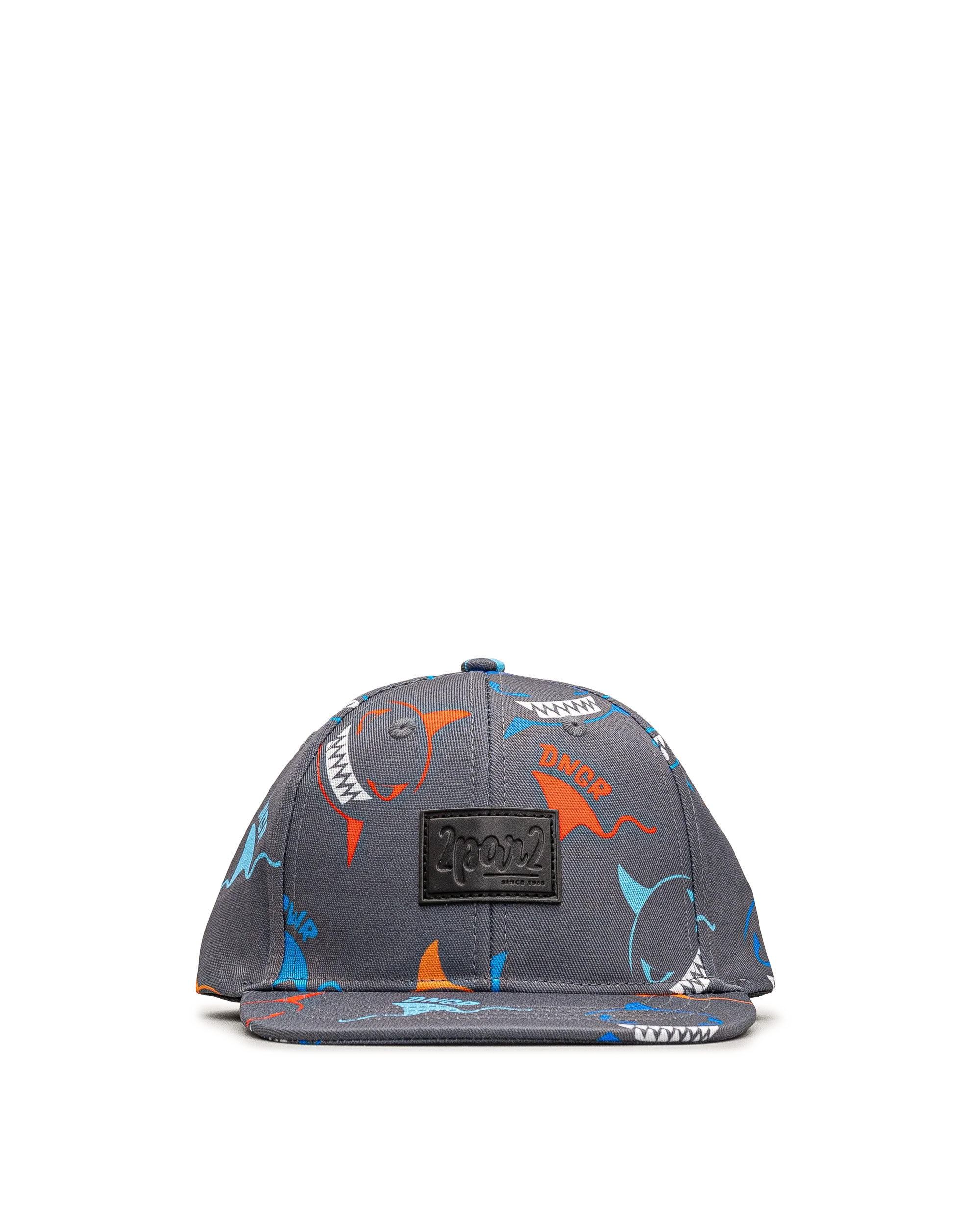 Cette casquette grise de Deux par Deux présente un imprimé de requins aux couleurs vives. Sa visière plate et sa coupe structurée offrent un look moderne. Ajustable à l’arrière, elle assure un maintien optimal. Un accessoire pratique et original pour les petits explorateurs.