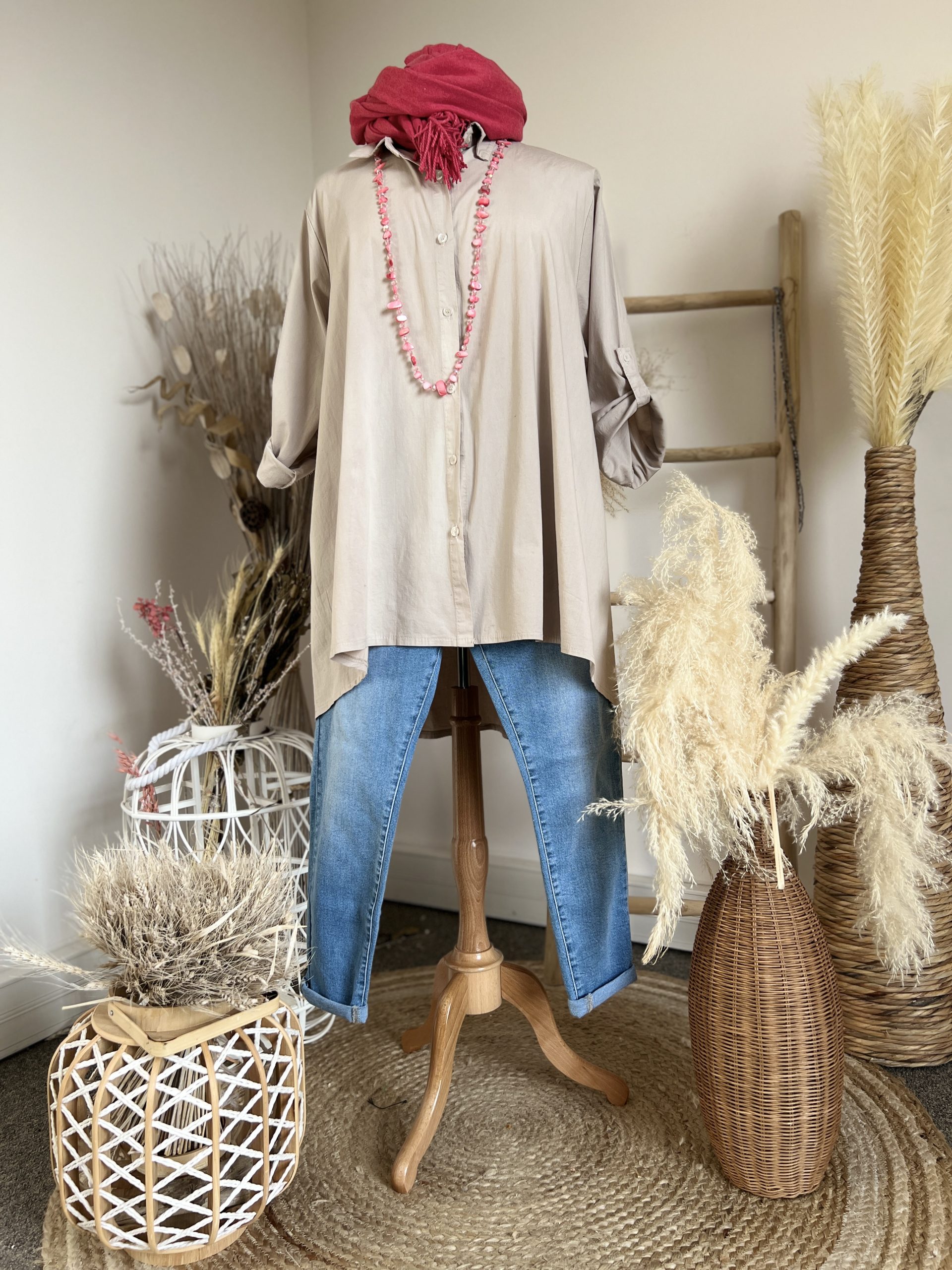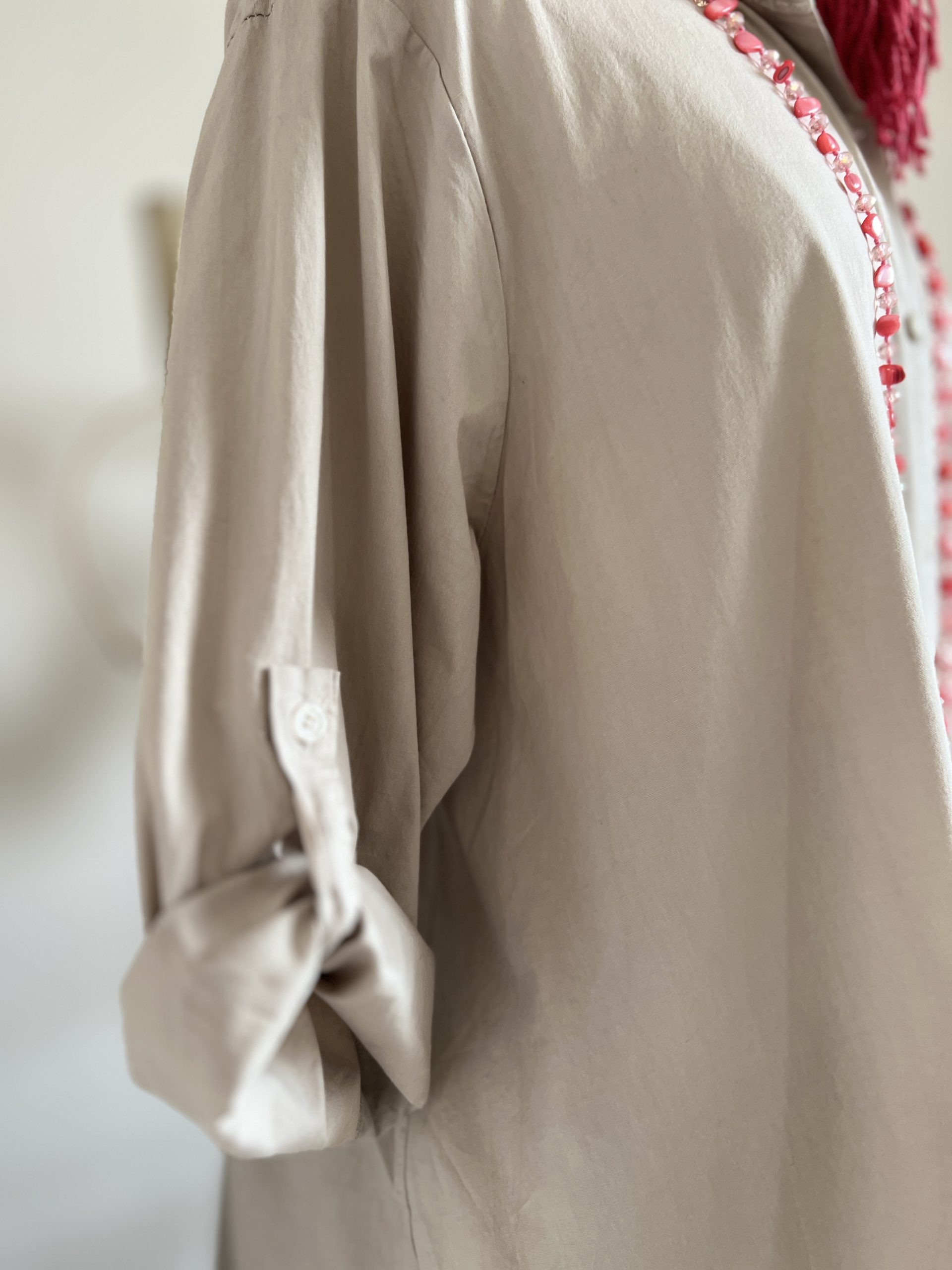 Chemise beige, fabrication italienne. N’hésitez pas à nous contacter sur Facebook, Instagram & pinterest pour plus d’information.