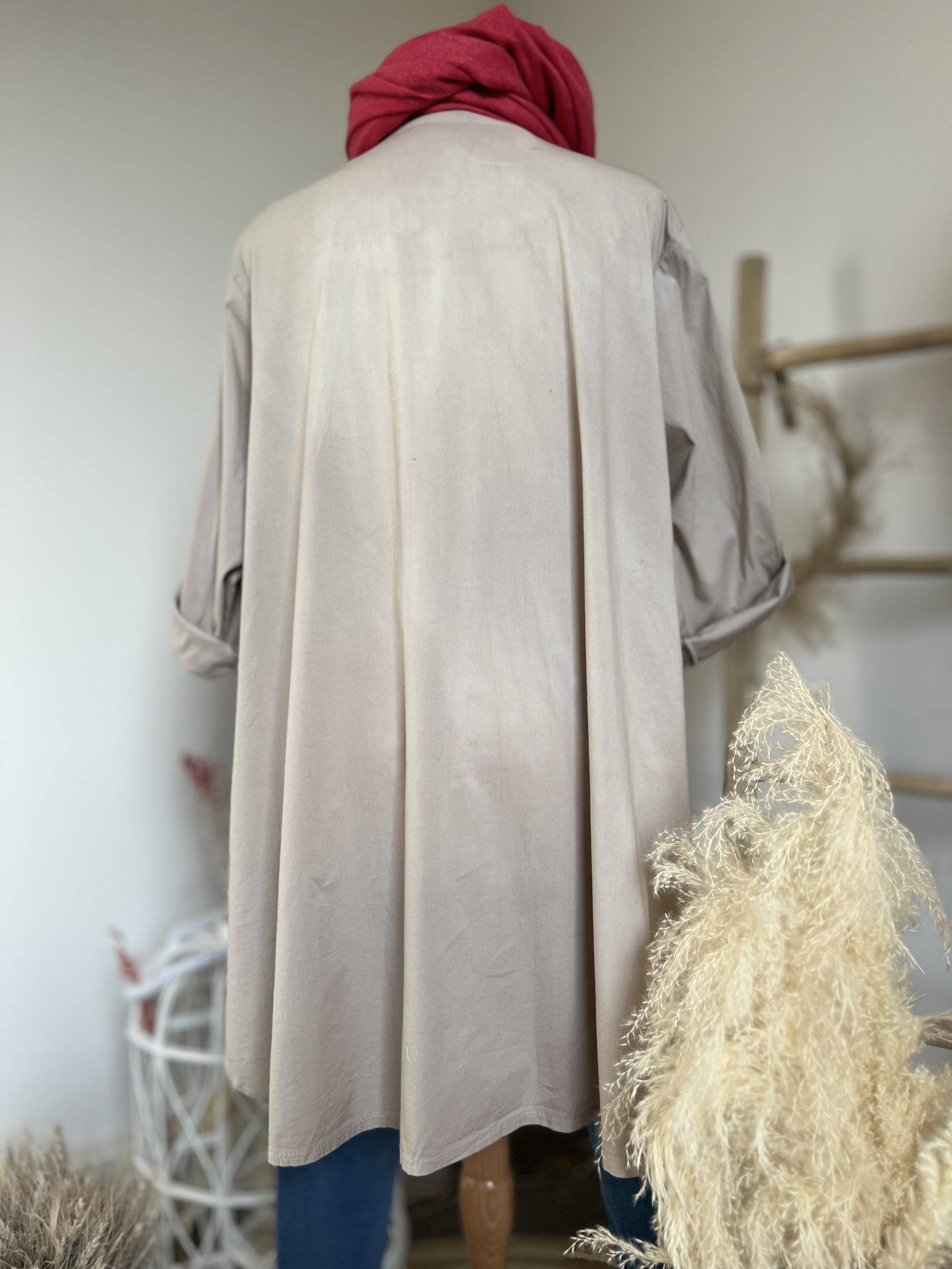 Chemise beige, fabrication italienne. N’hésitez pas à nous contacter sur Facebook, Instagram & pinterest pour plus d’information. Taille & coupe Taille unique 44-50 Silhouette: Droit Longueur: Normale Longueur des manches: Manches longues Matière & entretien Composition: 95% coton, 5% élasthanne Conseils d’entretien:  ne pas mettre au sèche-linge, lavage à 30°