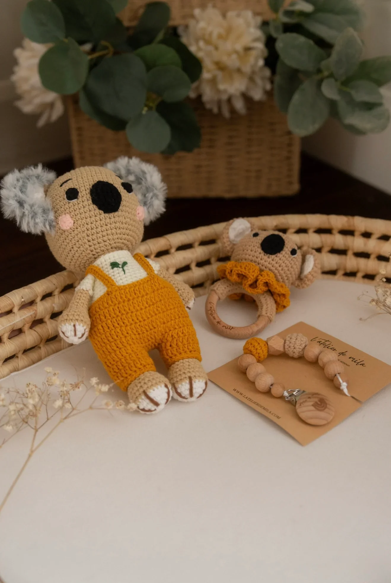 Offrez un cadeau empreint de tendresse et d’élégance avec notre Coffret Sublime Lucas le koala, un ensemble soigneusement conçu pour célébrer la naissance de bébé dans la douceur et le raffinement. Chaque élément est confectionné à la main à partir de matériaux choisis pour leur qualité, leur confort et leur beauté intemporelle.