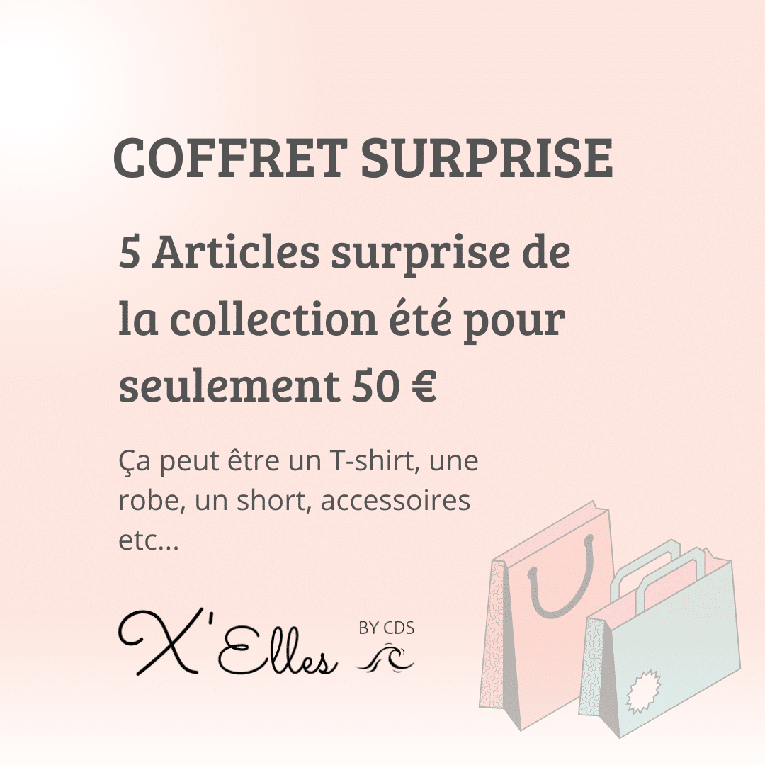 Plongez dans l’univers de la mode estivale avec notre Coffret Surprise Spécial Été si vous aimez les surprise c’est le moment idéal.
