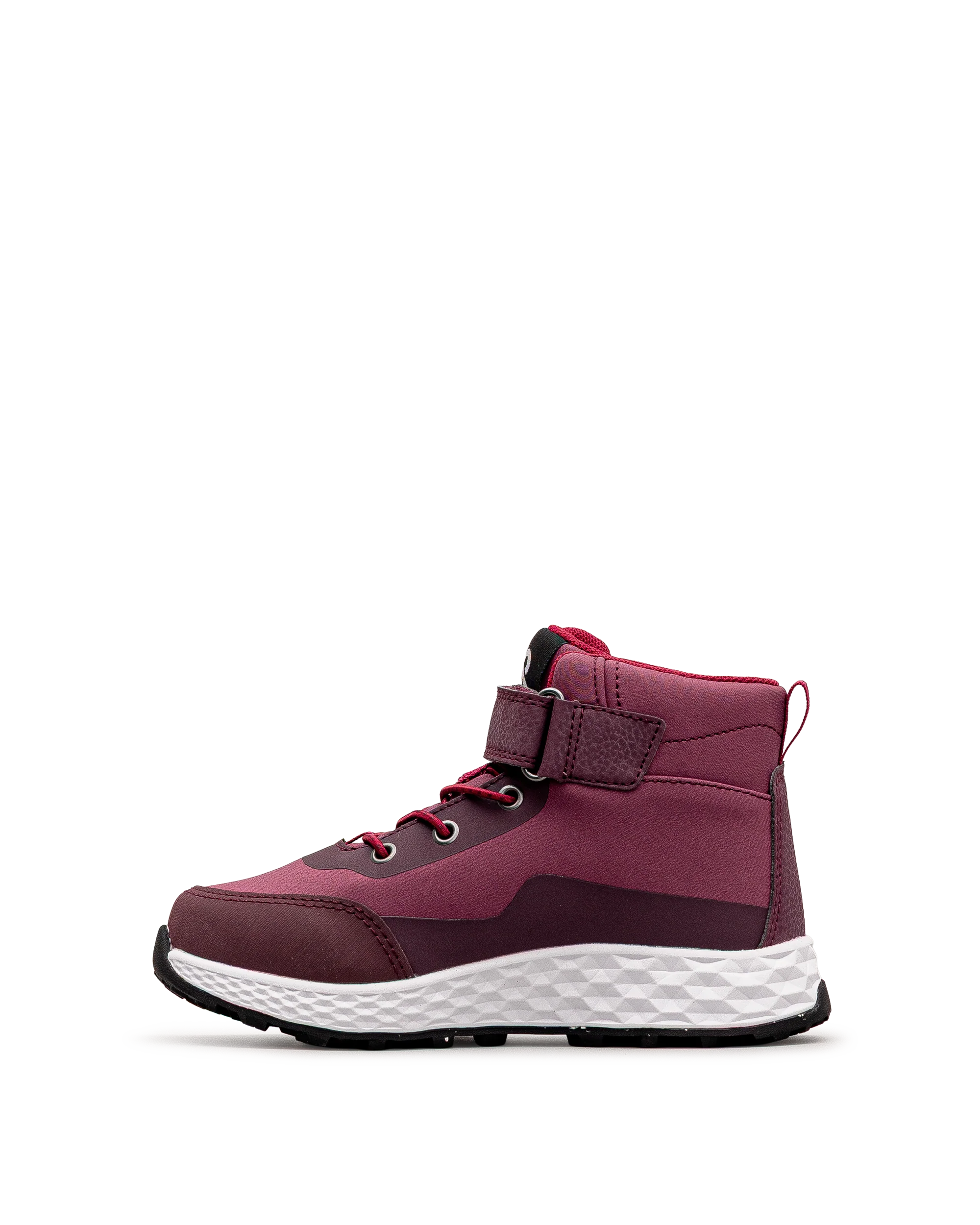 Les bottes Reima Hiipien PS Junior bourgogne pour enfants sont des bottines mi-saison super légères conçues pour toutes les aventures. Elles possèdent une membrane imperméable qui garde les pieds au sec jusqu’à la cheville, une tige en mélange de textile et synthétique durable et respirante, et une doublure chaude testée pour assurer un confort jusqu’à -10 °C. Les lacets élastiques et la bande velcro facilitent l’enfilage, tandis que la semelle extérieure en caoutchouc offre une excellente adhérence. Des détails réfléchissants améliorent la visibilité, et les matériaux utilisés sont recyclés, sans PVC ni fluorocarbures.
