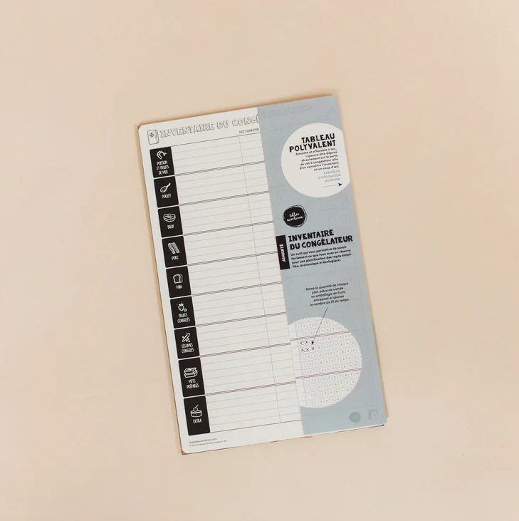 Vous souhaitez profiter pleinement de vos congés en famille et ne pas avoir à vous soucier continuellement de la planification des repas? Le congélateur est votre meilleur allié! Mais, avec six ou deux enfants, un congélateur se remplit rapidement et on peut s’y perdre facilement! Notre Inventaire du congélateur magnétique et effaçable à sec vous sera donc très pratique pour garder le compte des repas préparés d’avance, de la viande prête à cuisiner ou des légumes qui pourraient accompagner votre repas du soir. Inscrivez-y aussi la date d’expiration de chacun des aliments que vous y déposez, ce qui vous évitera de gaspiller de la nourriture. Alors, qu’est-ce qu’on mange pour souper?