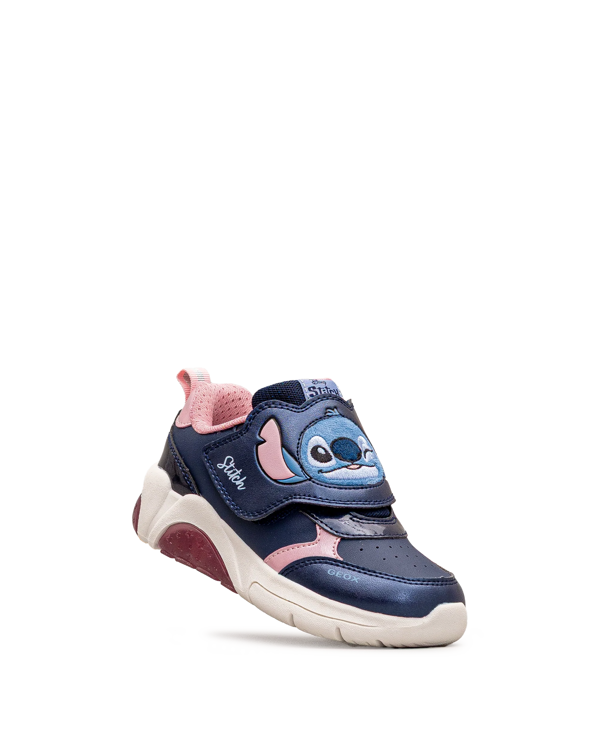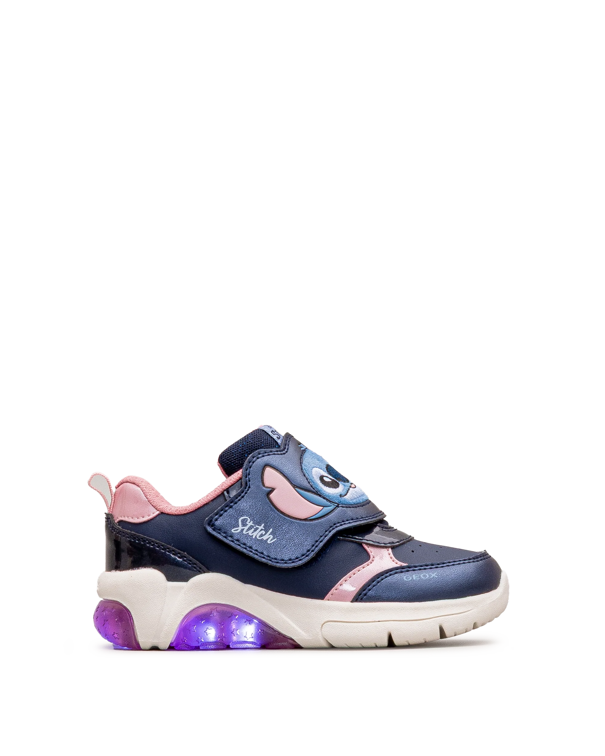 Ces chaussures Geox marine et rose sont idéales pour les enfants qui aiment le style Disney. Leur semelle lumineuse et leur personnage Stitch ajoutent une note amusante au quotidien. Faciles à enfiler grâce à leur bande autoagrippante, elles assurent un bon maintien du pied. Un choix plein de fantaisie pour les petites aventurières.