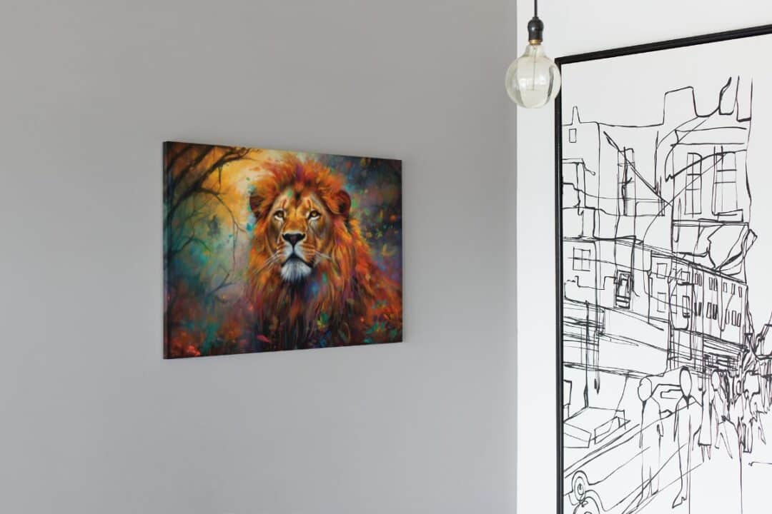 Le lion, symbole de puissance et de noblesse, est ici représenté dans toute sa splendeur. En effet, les teintes dynamiques et les contrastes audacieux ajoutent une dimension émotionnelle à cette œuvre. De plus, elle apporte une ambiance à la fois apaisante et stimulante, idéale pour les espaces de vie ou de travail. Par ailleurs, ce tableau inspire à la fois respect et admiration, rendant chaque pièce unique et mémorable.