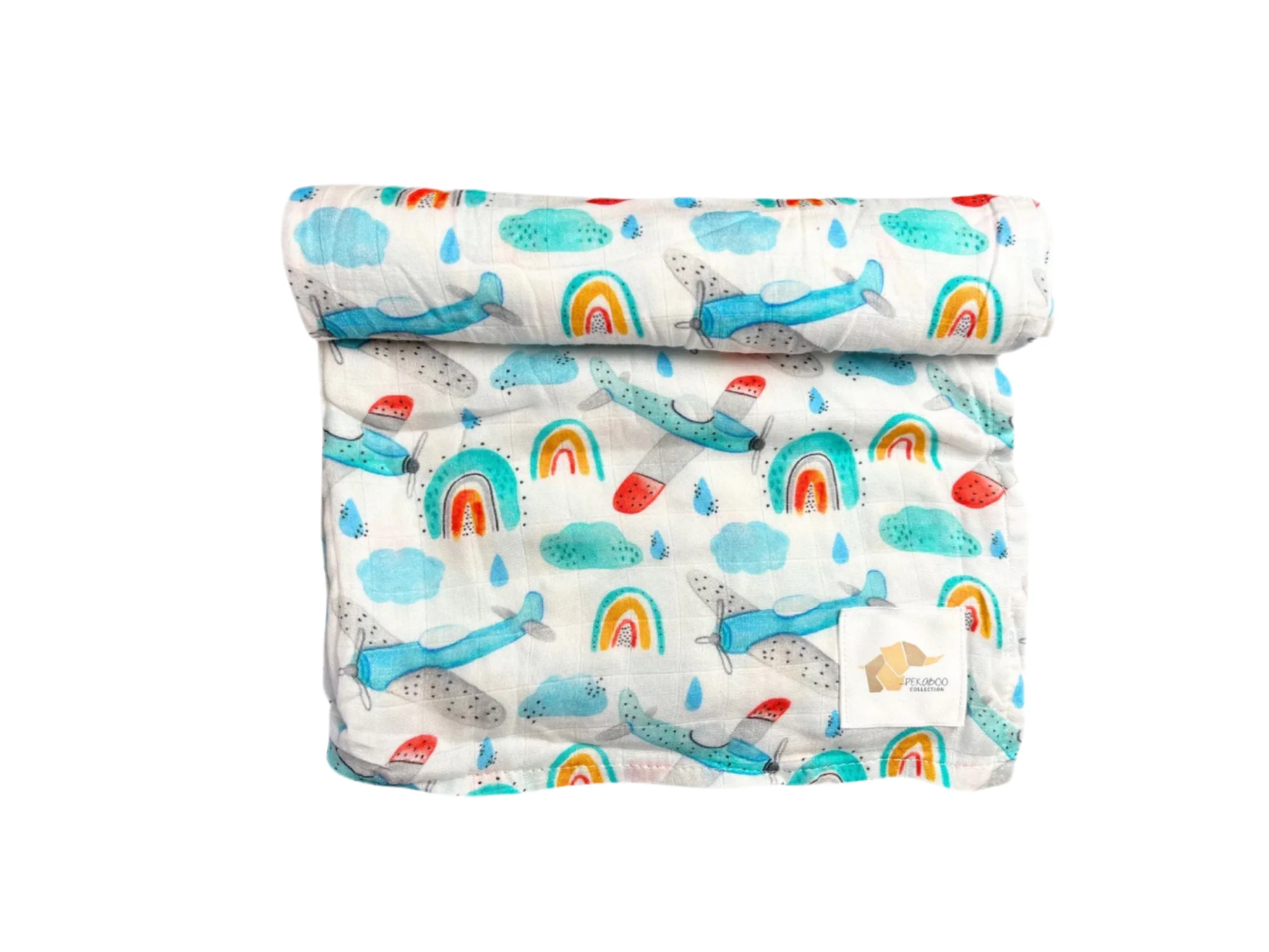 Légère et spacieuse, cette couverture peut être utilisée comme couverture d’emmaillotage, serviette d’allaitement, bavoir d’appoint, couverture de poussette ou même comme tapis d’éveil.