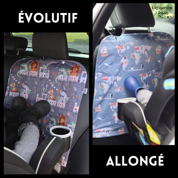 Une solution idéale pour protéger les dossiers d’auto des bottes sales tout en stimulant mini! Notre protège dossier a été conçu en partenariat avec des techniciennes en sécurité des enfants passagers (TSEP) afin de respecter les recommandations des fabricants de bancs d’enfants en dos à la route.