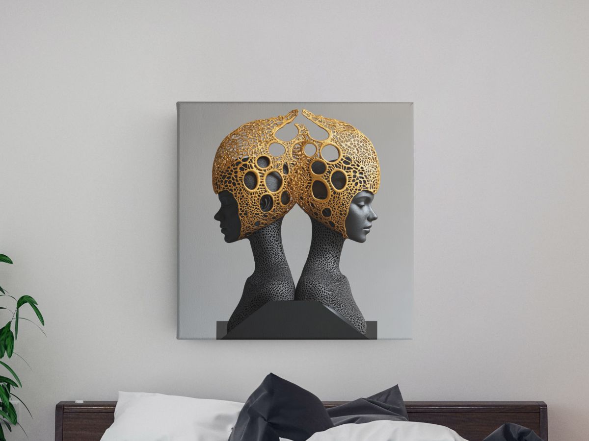 Le contraste entre le doré brillant et le noir texturé crée un effet visuel saisissant.