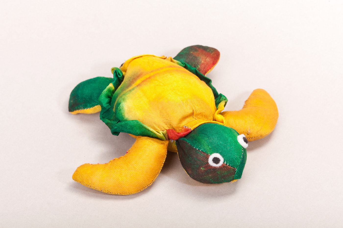 Tortue de mer colorée d’Afrique créée au Togo avec une association de femmes handicapées, disponible en plusieurs couleurs.