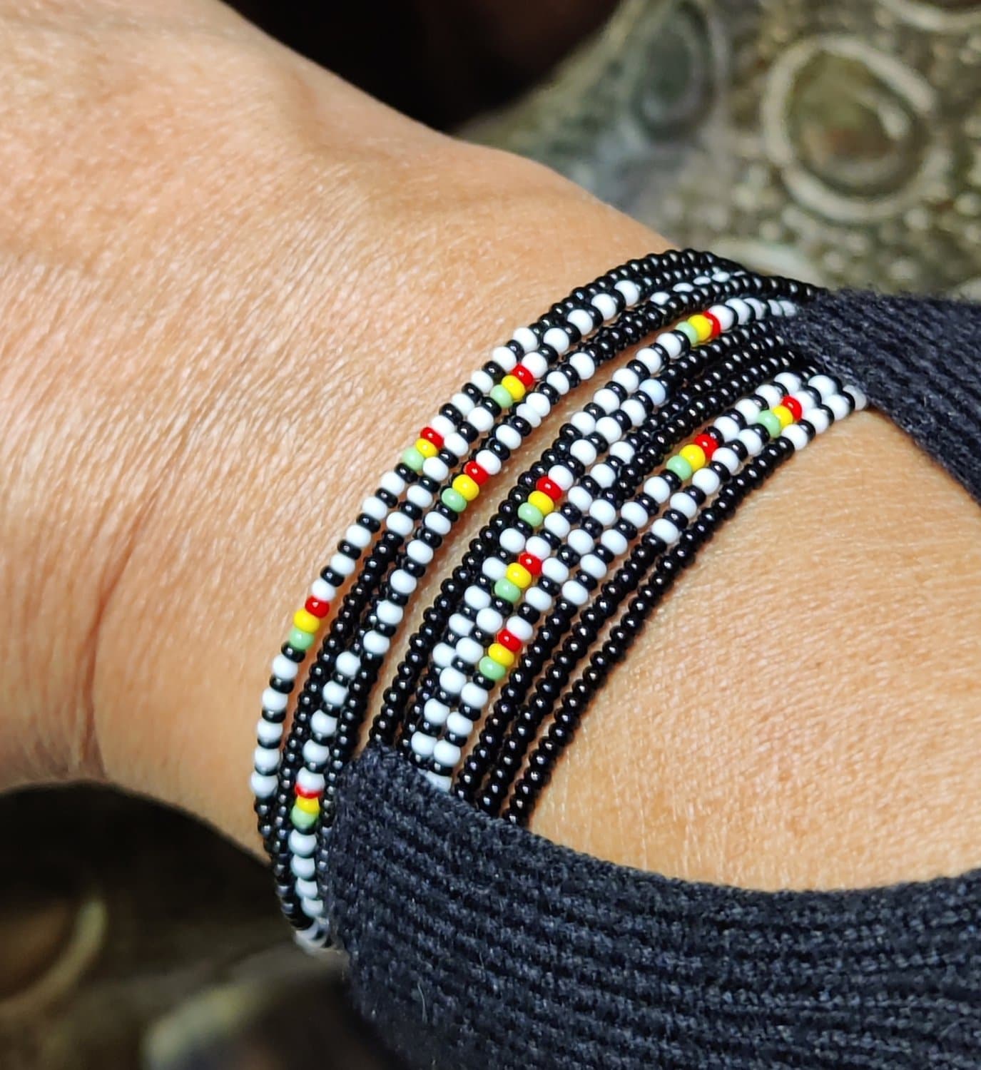 Tour de taille africain en perles de 1mm, 2 tours. Vous pourrez le porter comme un sautoir ou un bracelets. Un bijou culturel ancien d’Afrique de l’ouest devenu moderne ! Longueur 180 cm Perles fines de 1 mm Lors de la commande, merci de nous indiquer vos couleurs en commentaires.