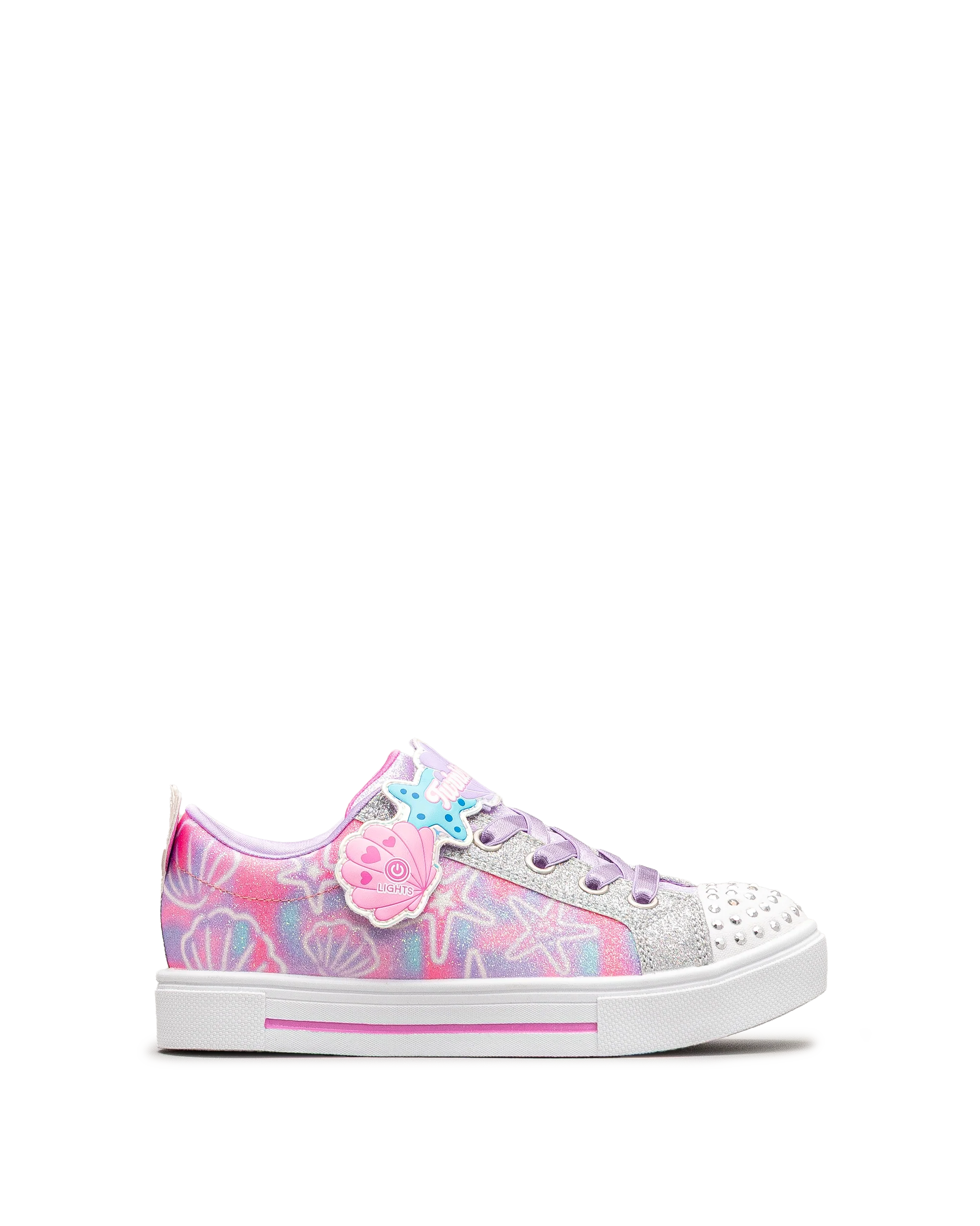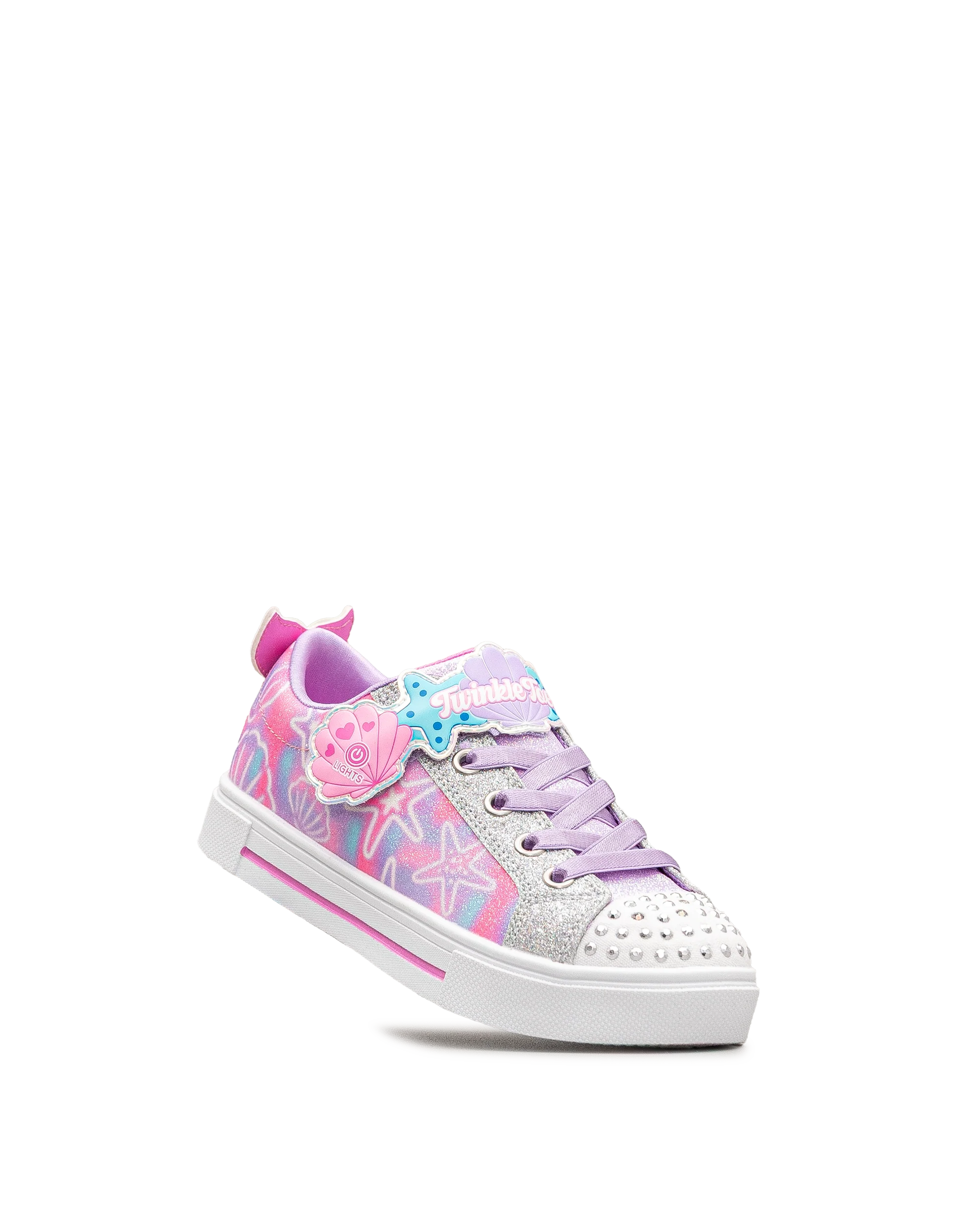 Ces chaussures Skechers colorées allient brillance, confort et fantaisie pour les petites passionnées de style. Leur design lavande aux accents scintillants séduit par ses motifs de coquillage et d’étoiles. Faciles à enfiler grâce à leur fermeture à élastique, elles illuminent chaque foulée. Un modèle lumineux qui plaira aux enfants à l’imagination débordante.