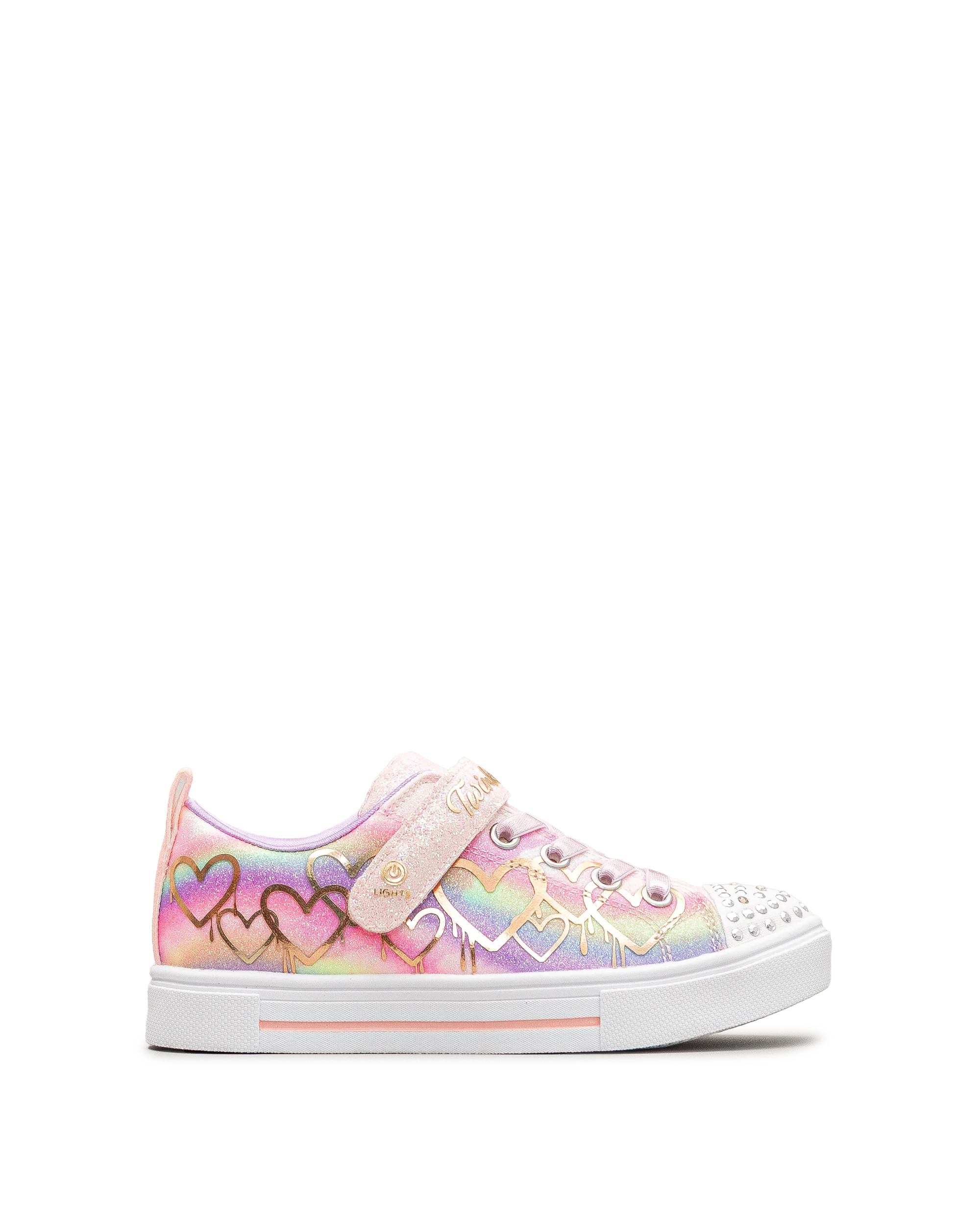 Ces chaussures Skechers rose pâle enchantent avec leurs cœurs colorés et leurs détails lumineux. Leur semelle scintillante illumine chaque pas avec fantaisie. Faciles à enfiler grâce à leur bande autoagrippante, elles assurent un bon maintien tout au long de la journée. Une touche de magie idéale pour les jeunes passionnées de style.