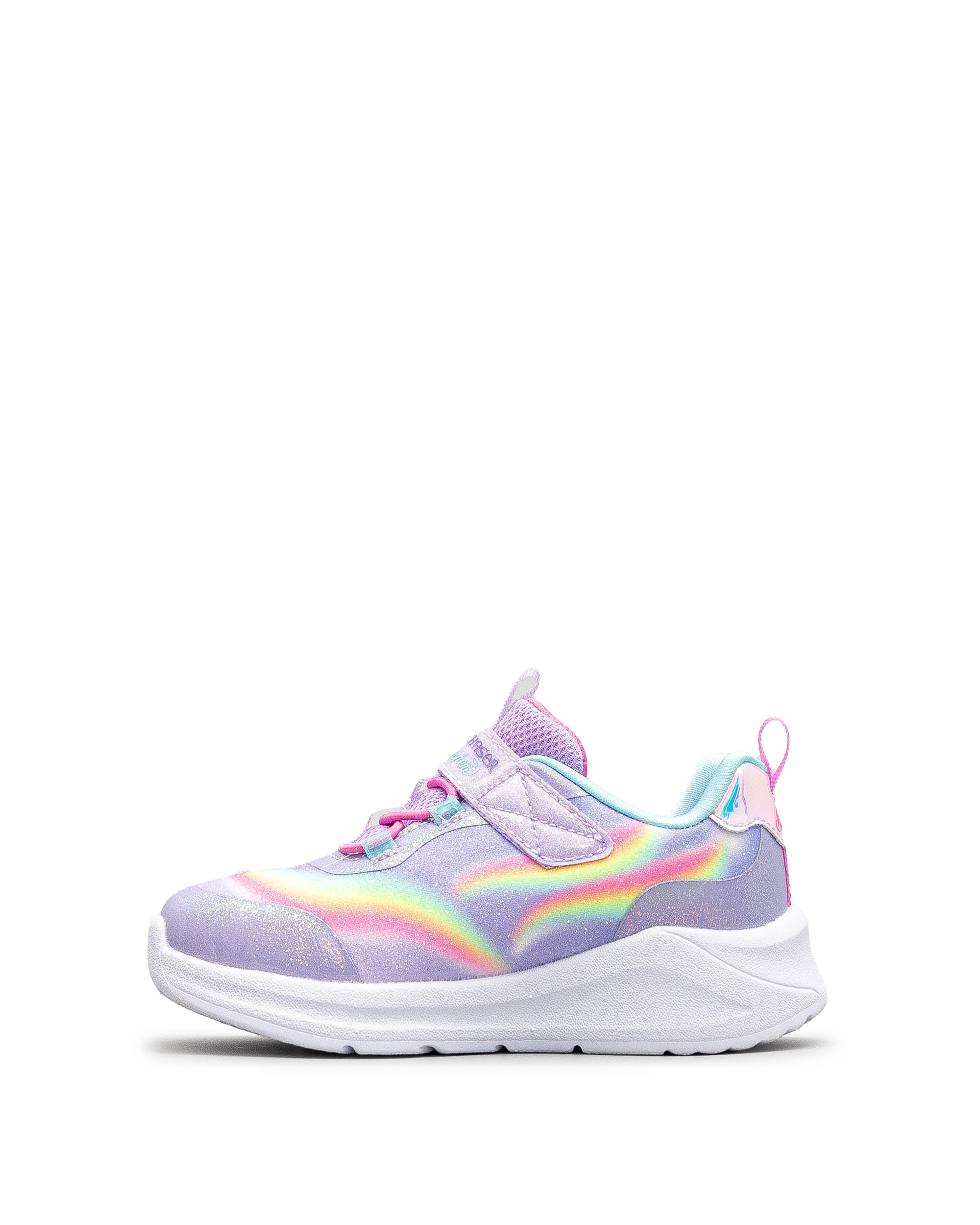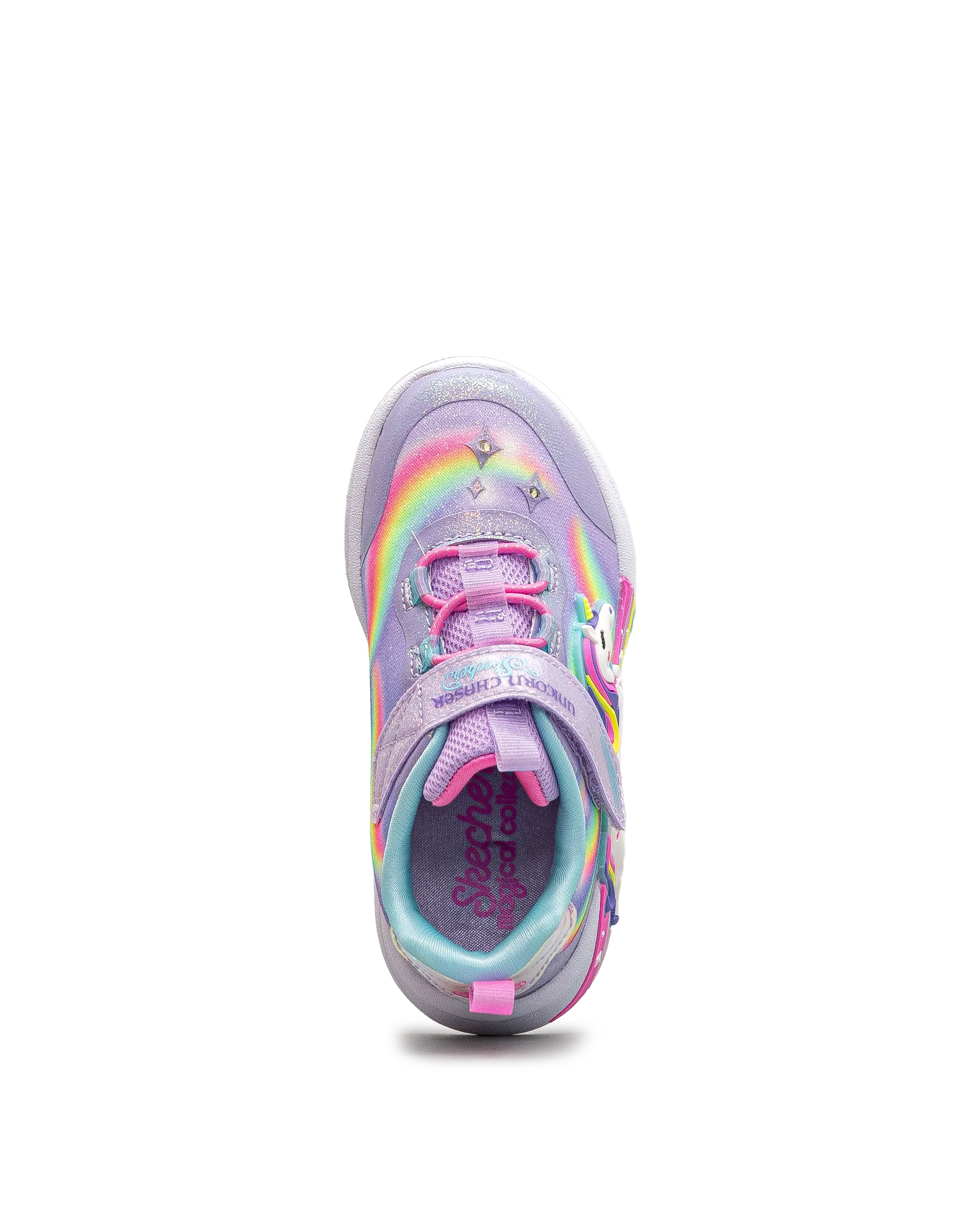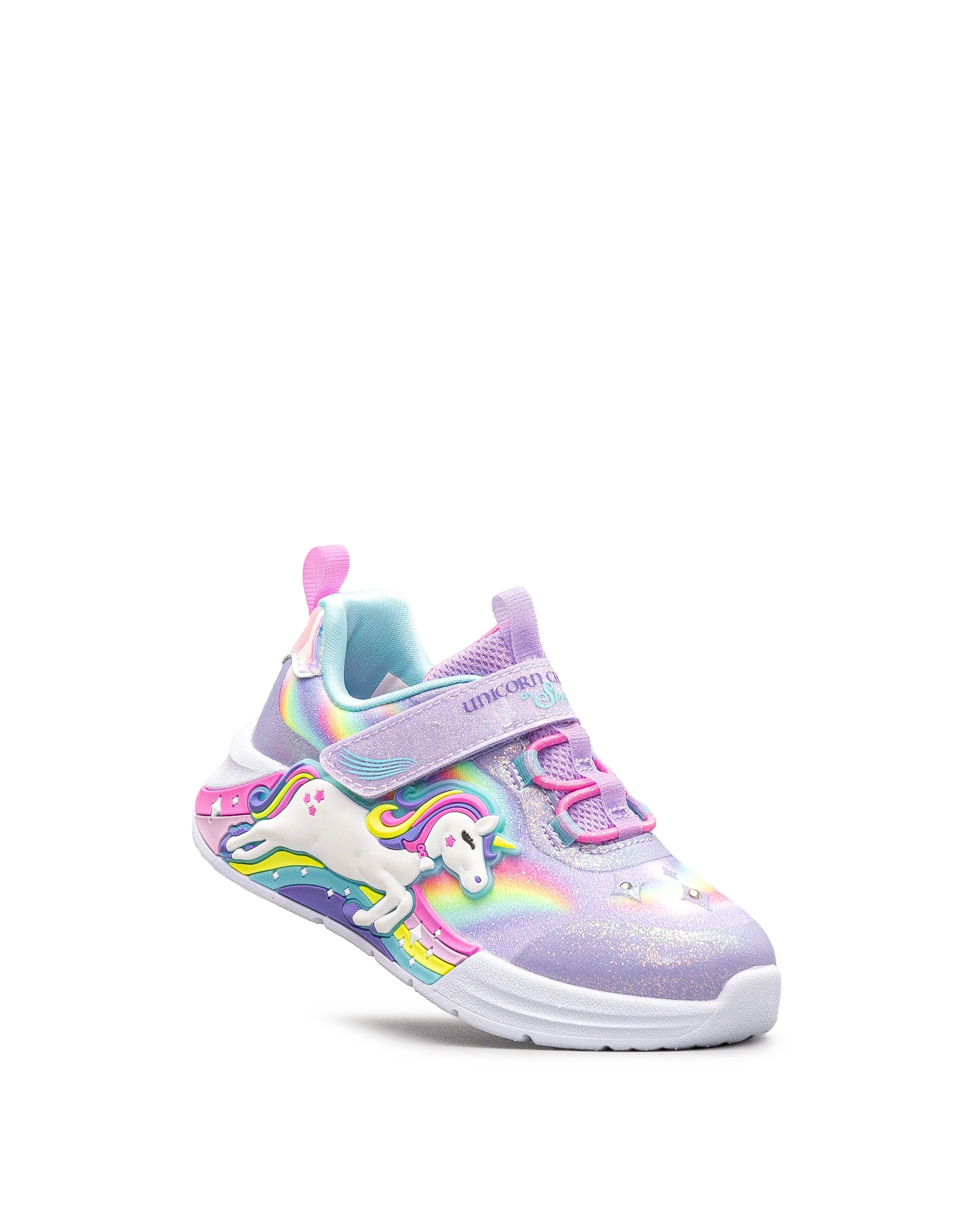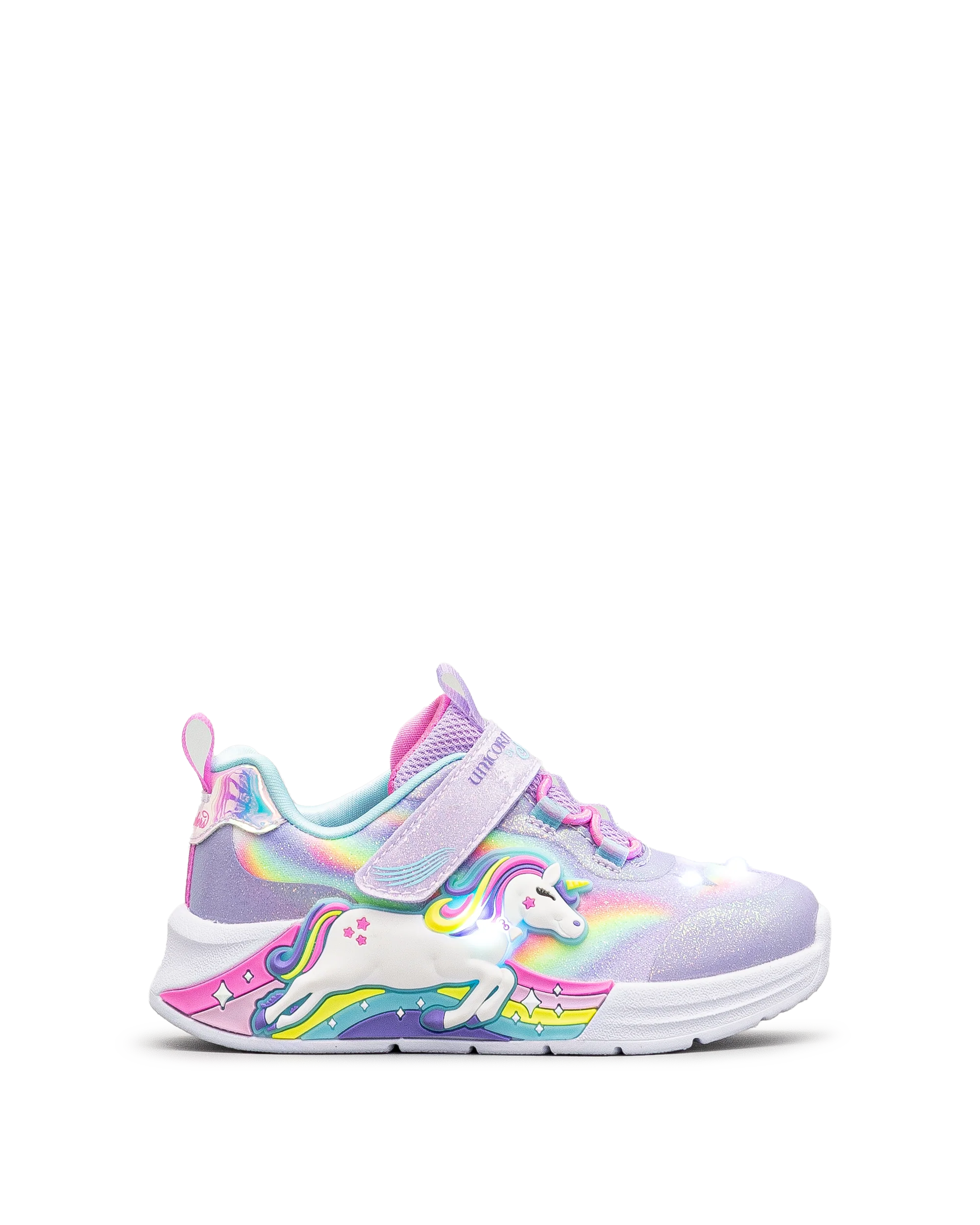 Ces chaussures Skechers lavande sont idéales pour ajouter une touche de magie au quotidien des tout-petits. Leur licorne arc-en-ciel et leur finition scintillante séduisent au premier regard. Faciles à enfiler, elles offrent aussi un confort optimal. Un modèle ludique parfait pour les jeunes rêveuses.