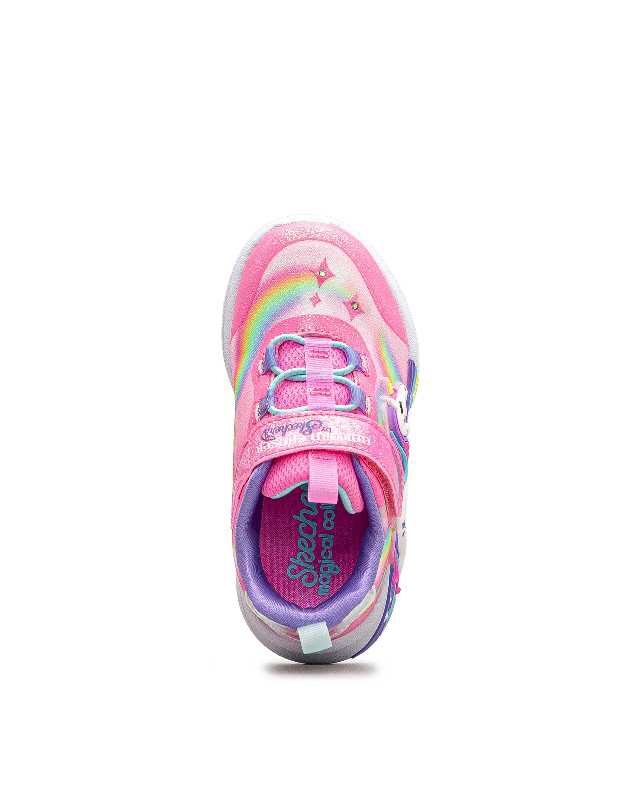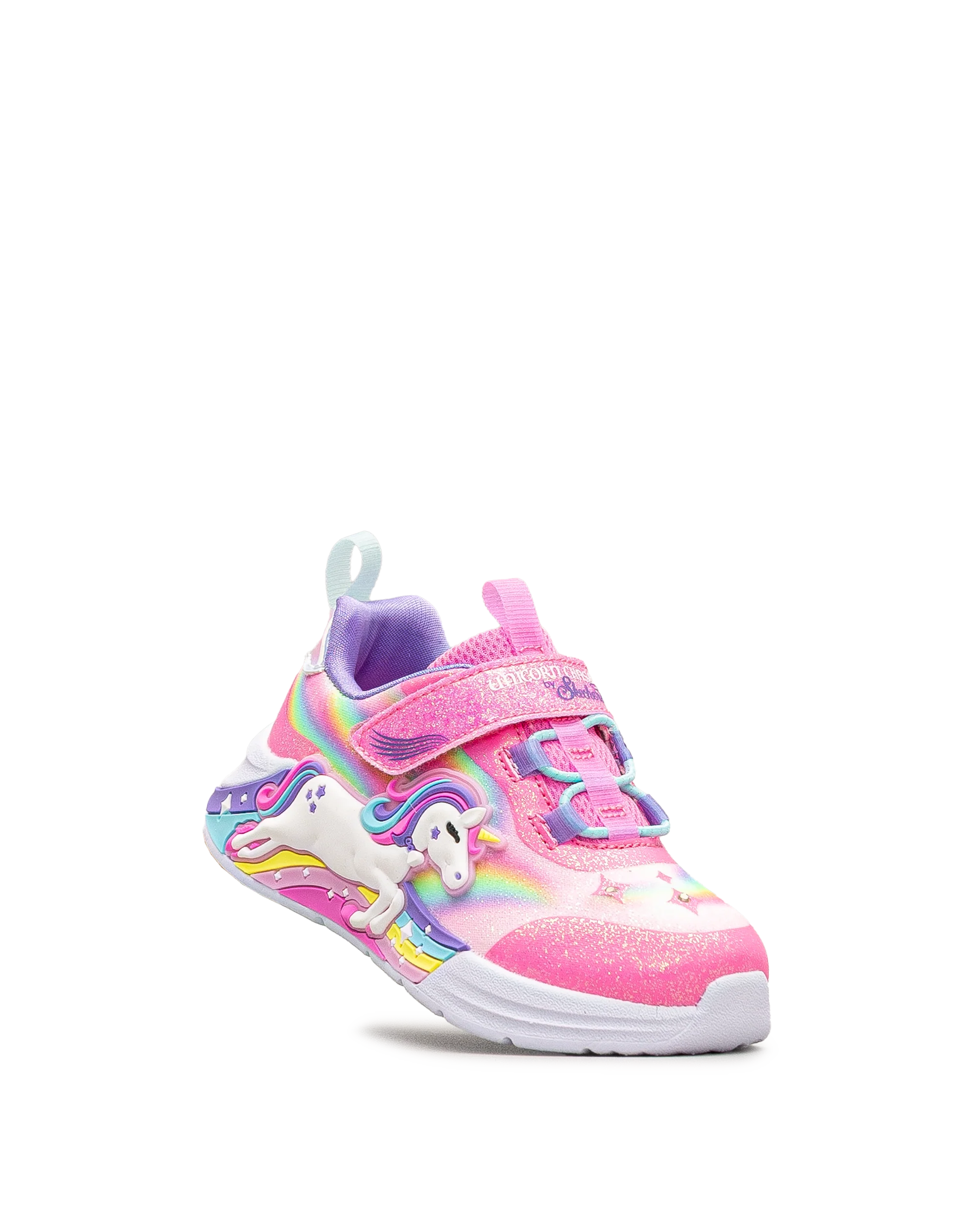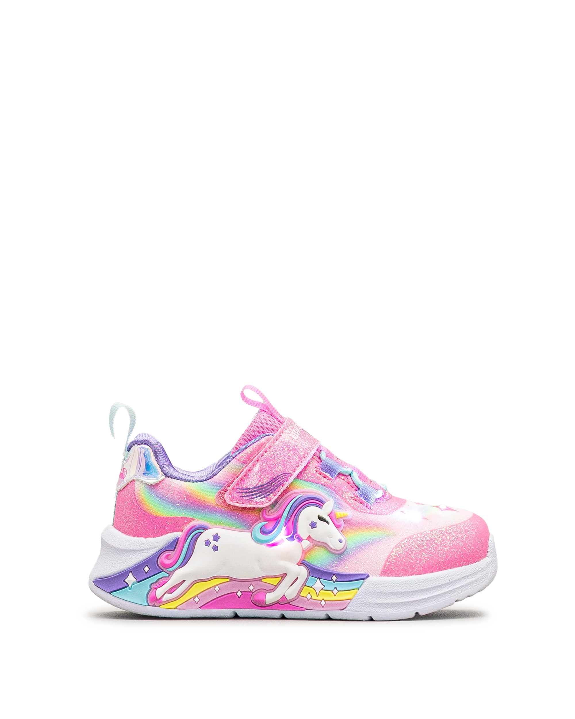Ces chaussures Skechers roses sont parfaites pour faire rêver les tout-petits. Leur licorne colorée et leur effet lumineux rendent chaque pas amusant. Faciles à enfiler grâce à leur attache pratique, elles allient style et confort. Une option enchantée pour les jeunes exploratrices.